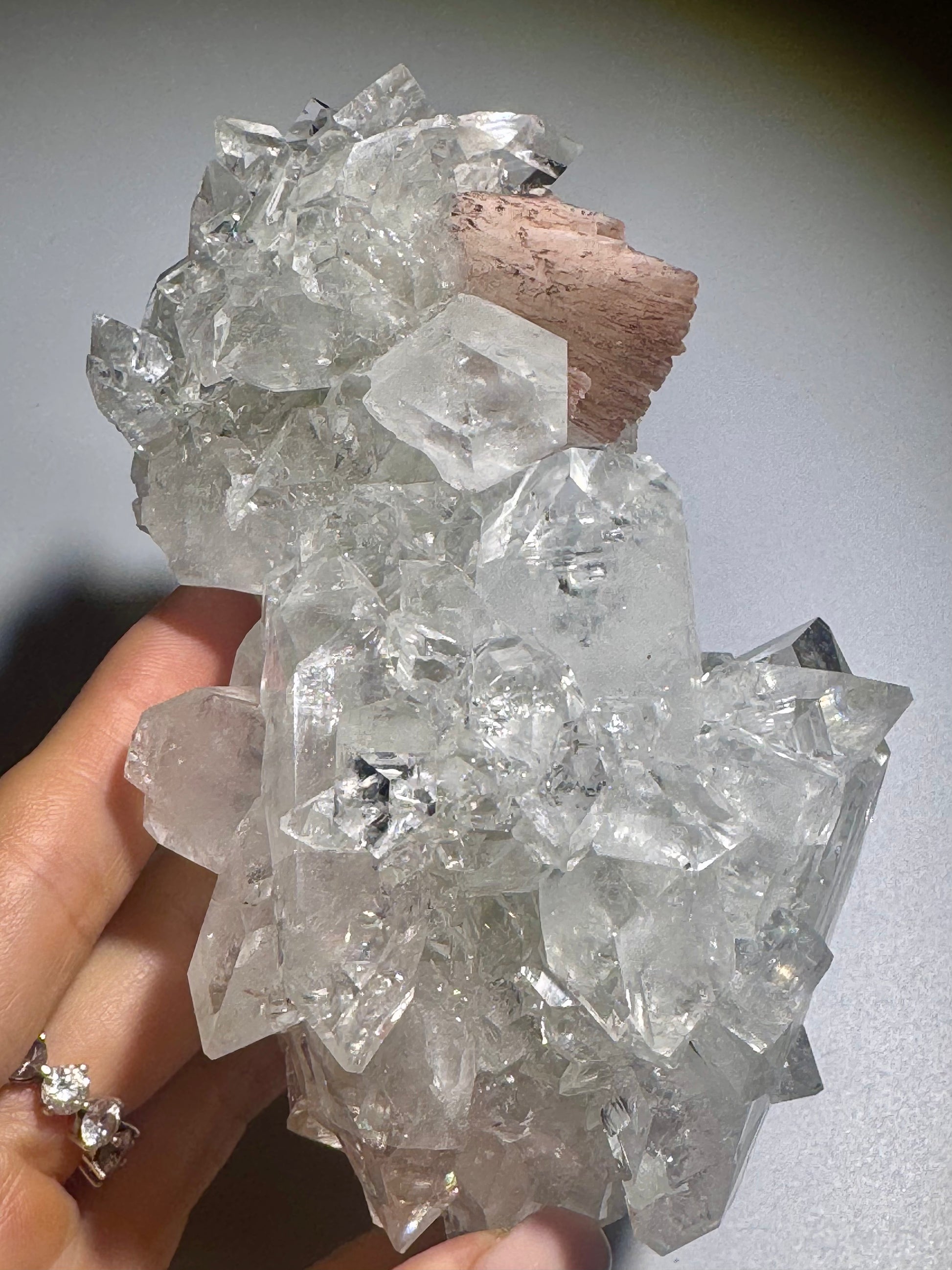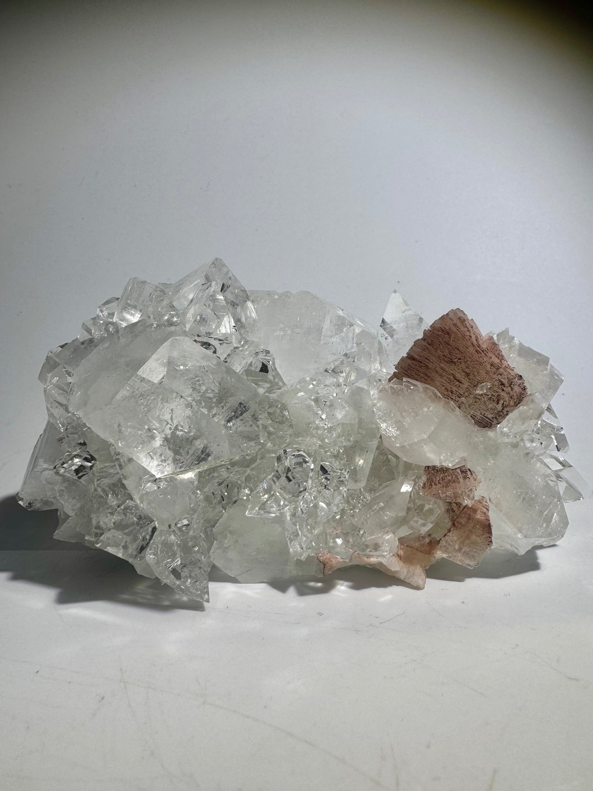 Premium Apophyllit 12,5 cm · 450 g – Perfekte klare Spitzen & altrosa Stilbit