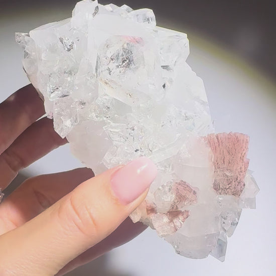 Diamond Apophyllite entsteht tief im Erdinnern, wenn Mineralien in vulkanischen Hohlräumen über Millionen Jahre kristallisieren. Hitze, Druck und mineralische Lösungen formen die glasklaren Spitzen, während jede Nuance des Kristalls ein Abbild der geologischen Geschichte der Erde ist. Jedes Spezimen ist ein einmaliges Zeugnis der Natur ✨