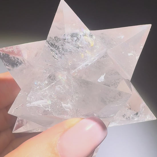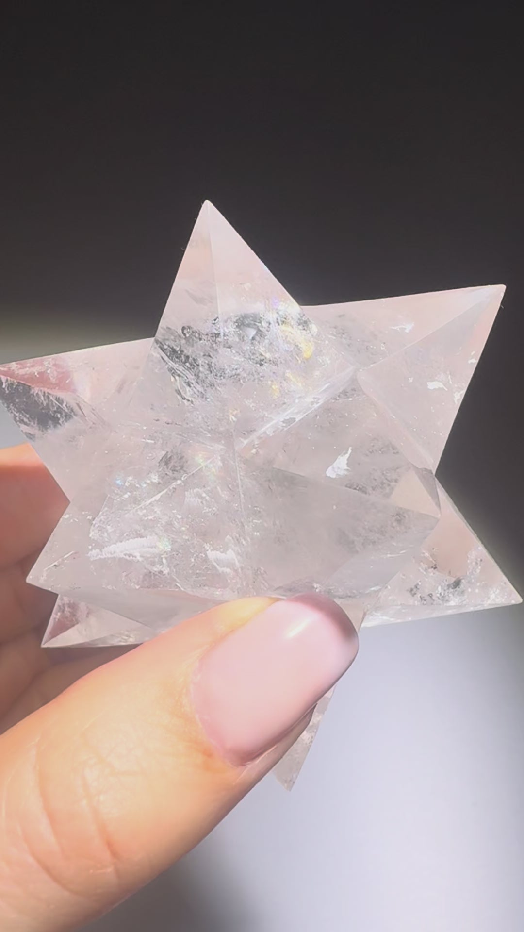 Bergkristall Merkaba 7.5 cm mit Regenbogen – Klarheit, Geometrie & Lichtkraft 💎 182g