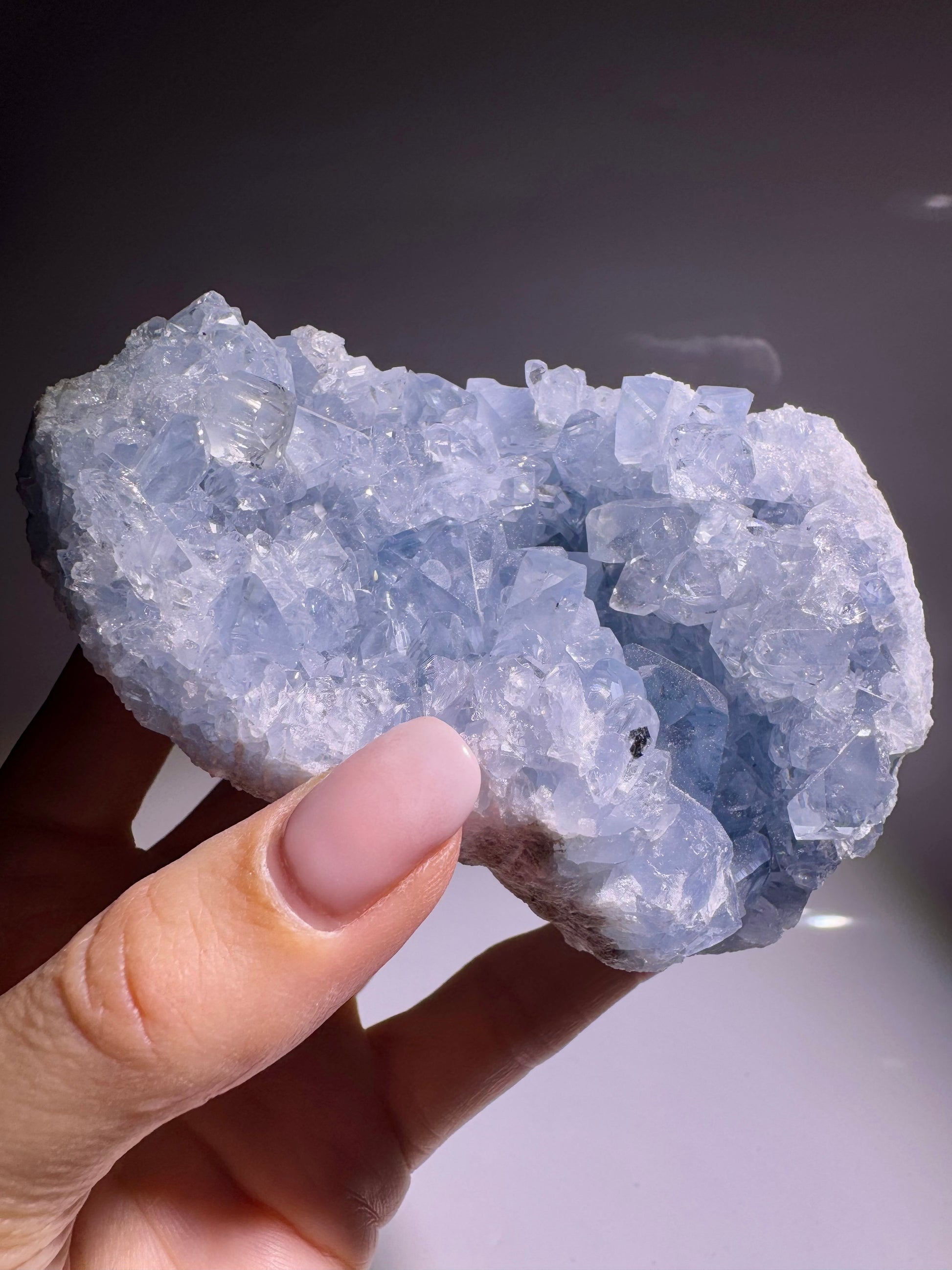 🔷 Celestin (auch Coelestin genannt) entsteht über Millionen von Jahren durch die Ablagerung von Sulfaten und die Kristallisation aus hydrothermalen Lösungen. Seine zarte blaue Farbe und die klare Kristallstruktur machen ihn zu einem der edelsten Sammlerkristalle überhaupt.