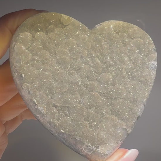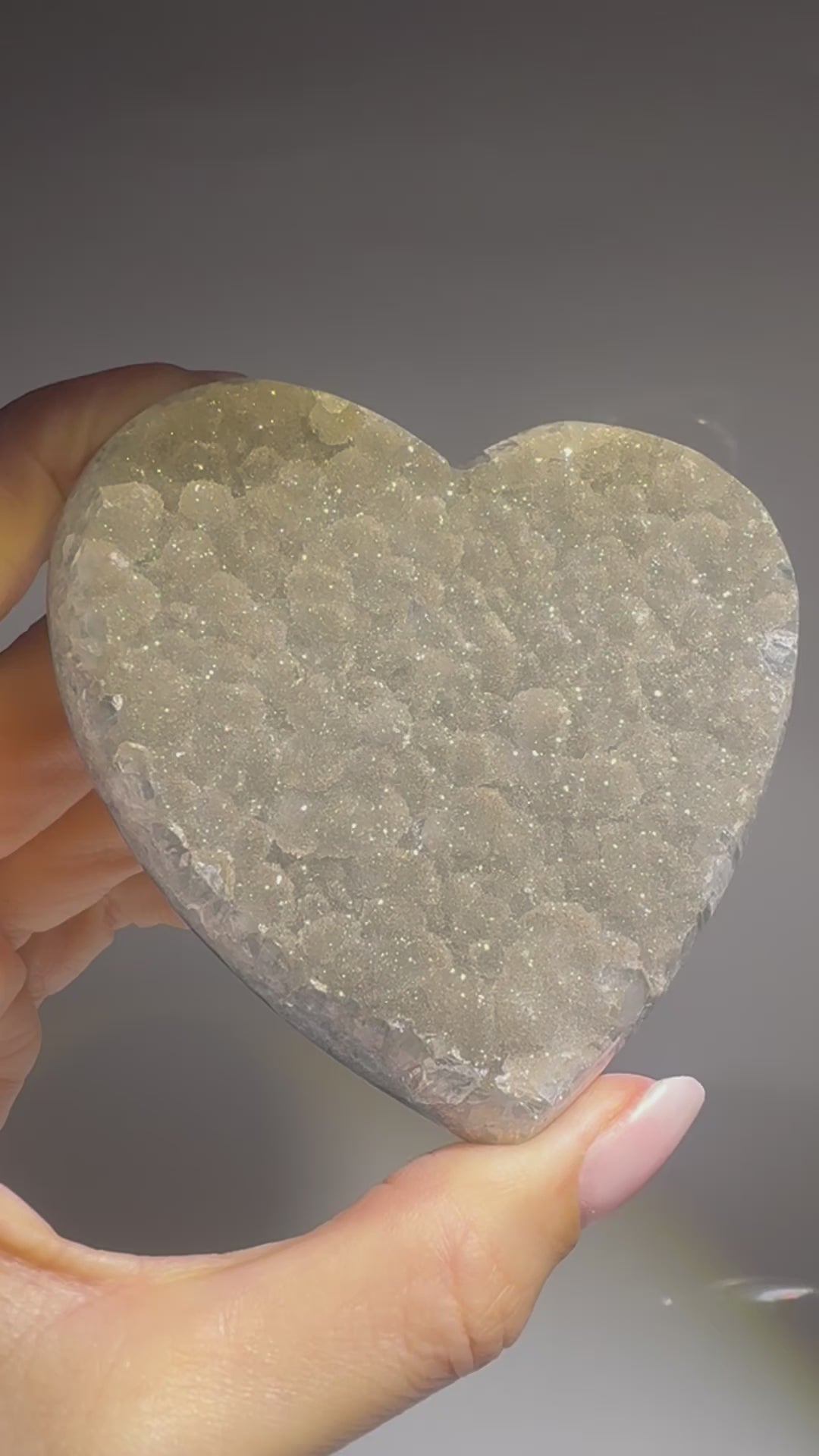 Dabei handelt es sich um zwei Wachstumsphasen in einem Kristall: Erst bildet sich eine Kristallschicht – dann folgt eine zweite Schicht aus neuen Kristallspitzen oder Strukturen. Das Ergebnis ist ein zauberhafter, fast zuckerartiger Glanz („sugary“ genannt), der den Stein lebendig funkeln lässt. Dieses Naturphänomen ist sehr selten und macht das Herz zu einem besonders hochwertigen Sammlerstück 💖