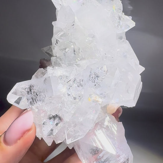 Dieses Diamond Apophyllite-Spezimen ist ein absolut exklusives, filigranes Naturjuwel in Museumsqualität. Die Spitzen sind extra klar, extrem glänzend, und einige reflektieren funkelnde Regenbogenfarben, die das Licht in faszinierender Weise brechen. Jedes Stück ist ein einzigartiges Naturkunstwerk, das Reinheit, Klarheit und Schönheit ausstrahlt. 💎🌈✨