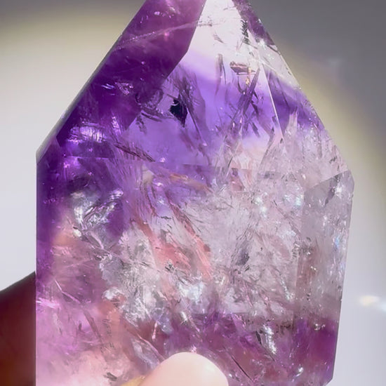 Phantom Amethyste entstehen über Millionen von Jahren in mehreren Wachstumsphasen. Während der Kristall langsam heranwächst, kommt es zu natürlichen Unterbrechungen – feine Minerale lagern sich ab, bevor der Kristall weiterwächst. Diese Schichtungen bilden die typischen “Phantome”: zarte Silhouetten eines früheren Kristallstadiums, eingeschlossen im Kristallinneren wie eine Zeitkapsel der Erde.
