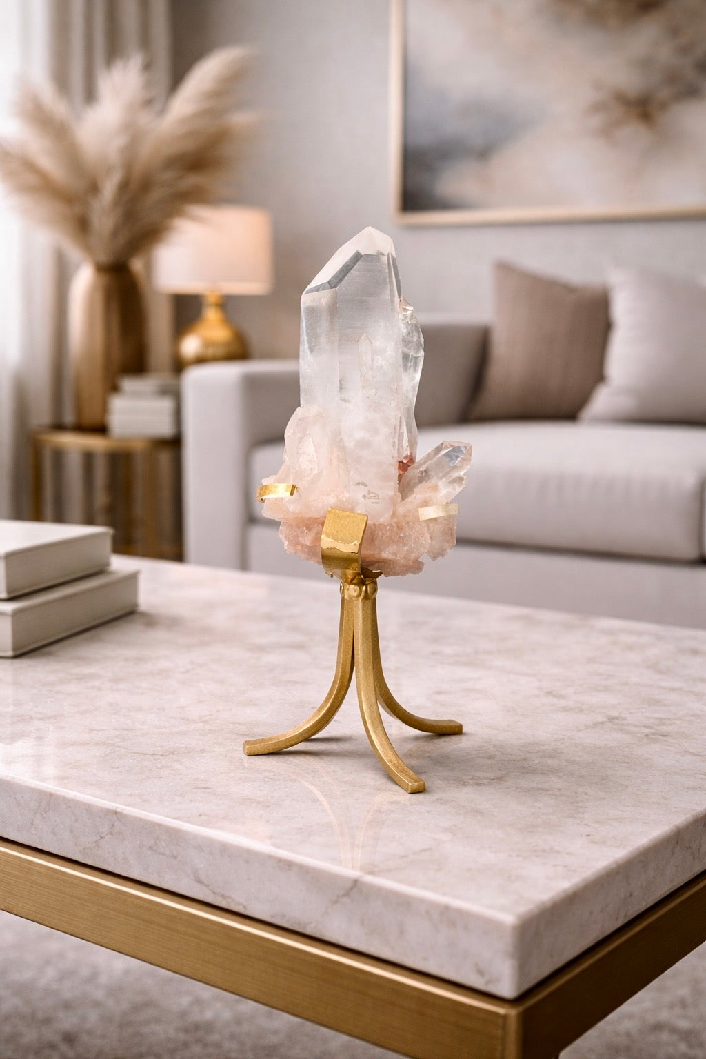 Pink Himalaya Quarz – naturbelassener Kristall mit Goldständer ✨