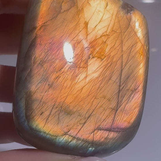 Durch den professionellen Schliff wurde die natürliche Labradoreszenz perfekt freigelegt: Jeder Lichtwinkel enthüllt ein neues Farbgeheimnis – mystisch, magisch und hypnotisierend schön. Dieser Labradorit verbindet visuelle Schönheit mit kraftvoller Energie.