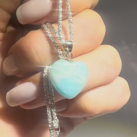 Larimar Herzanhänger 1,5 cm mit diamantierter 925 Silberkette