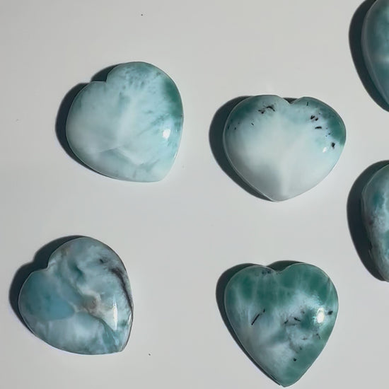 Jedes dieser kleinen Larimar Herzchen wurde von Hand geschliffen und sorgfältig poliert, damit die einzigartige Maserung und das unverwechselbare karibische Blau des Larimars voll zur Geltung kommt. Jedes Stück ist ein Unikat – du kannst genau das Herz auswählen, das dich am meisten anspricht.