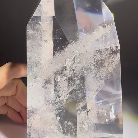 Die Reinheit dieser Spitze verstärkt die Wirkung und bringt ein helles, friedliches Strahlen in jeden Raum. Das Feuer und die Regenbogenreflexe erinnern an Leichtigkeit, Hoffnung und innere Balance.
