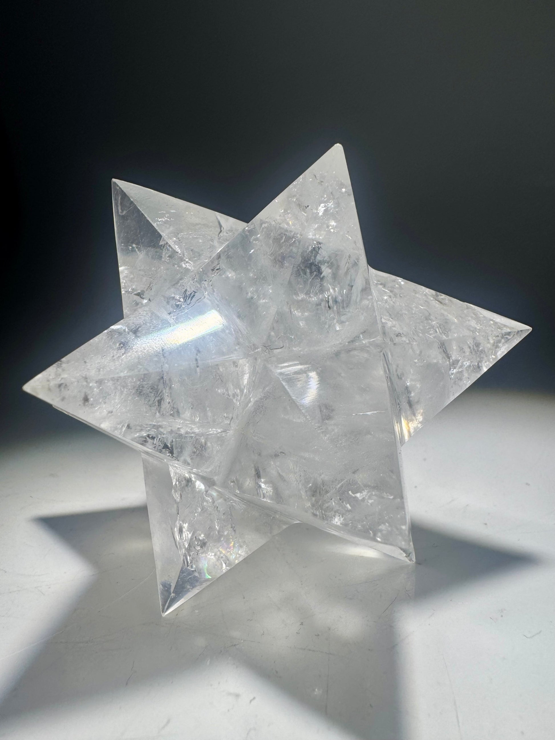 Merkaba Stern aus Bergkristall 7,6 cm – Extra klare Lichtenergie 💎