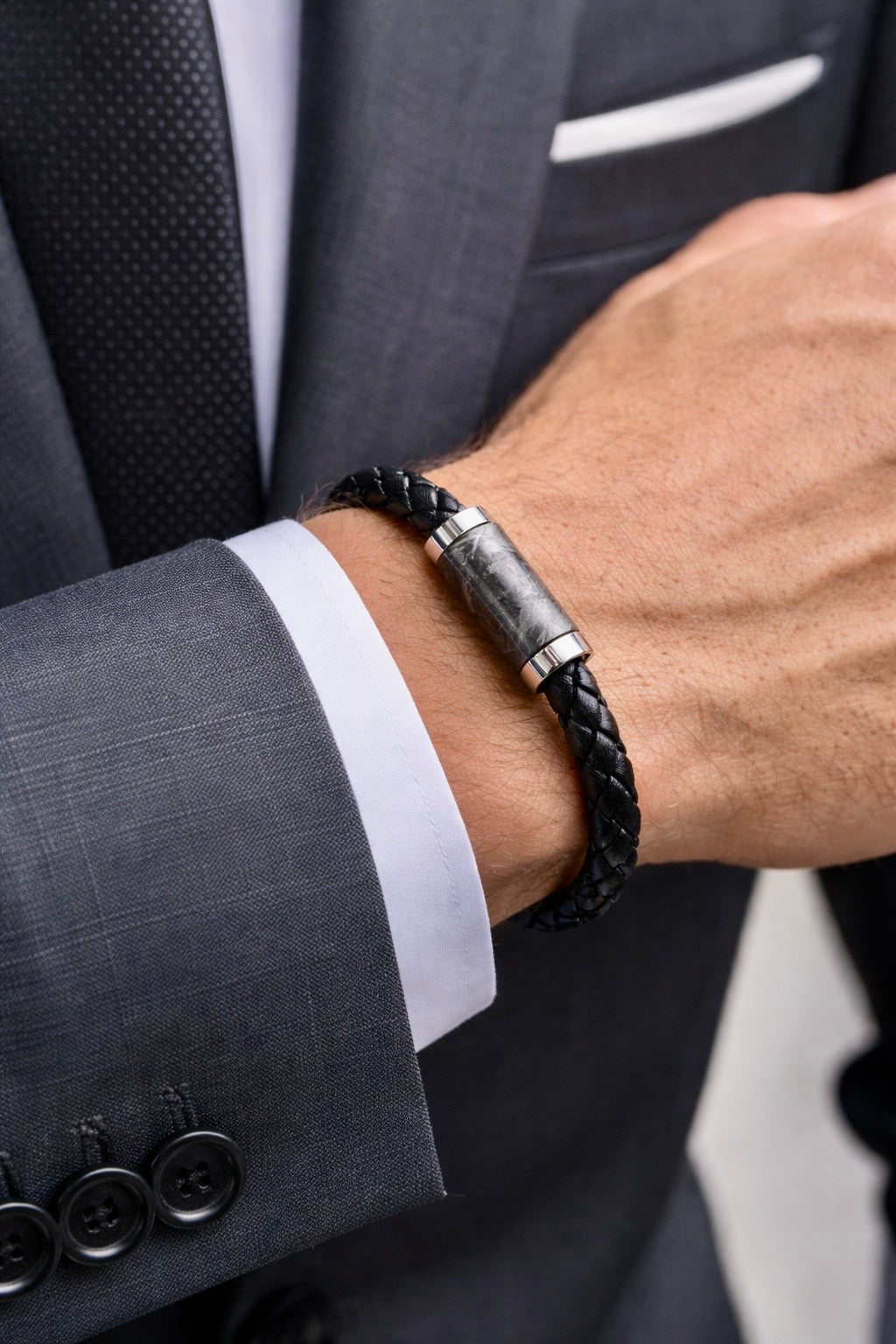Dieses exklusive Meteoritenarmband vereint maskuline Eleganz mit kosmischer Geschichte.