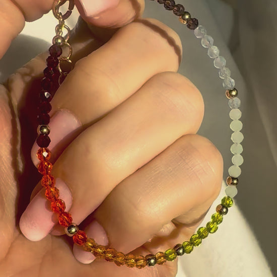 Die sieben Kristalle entsprechen den sieben Chakren und unterstützen dich, wenn du das Armband trägst: