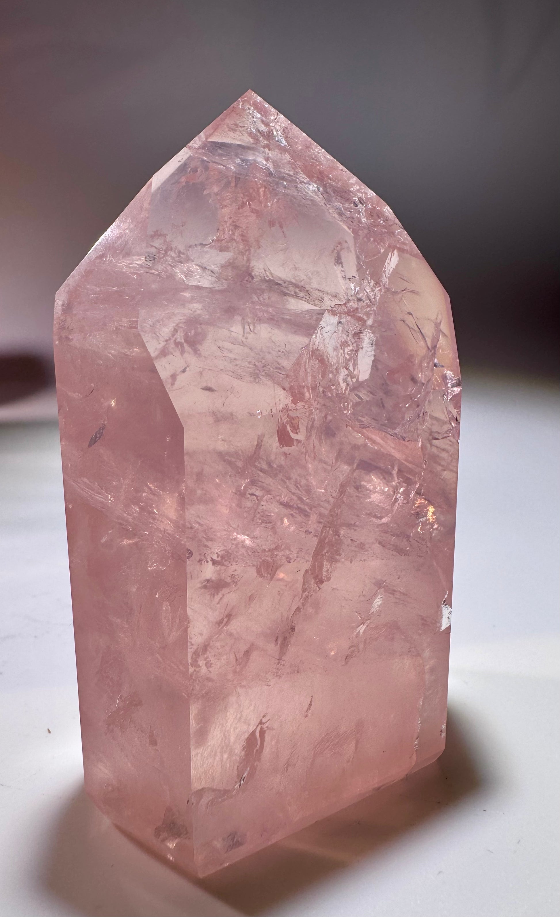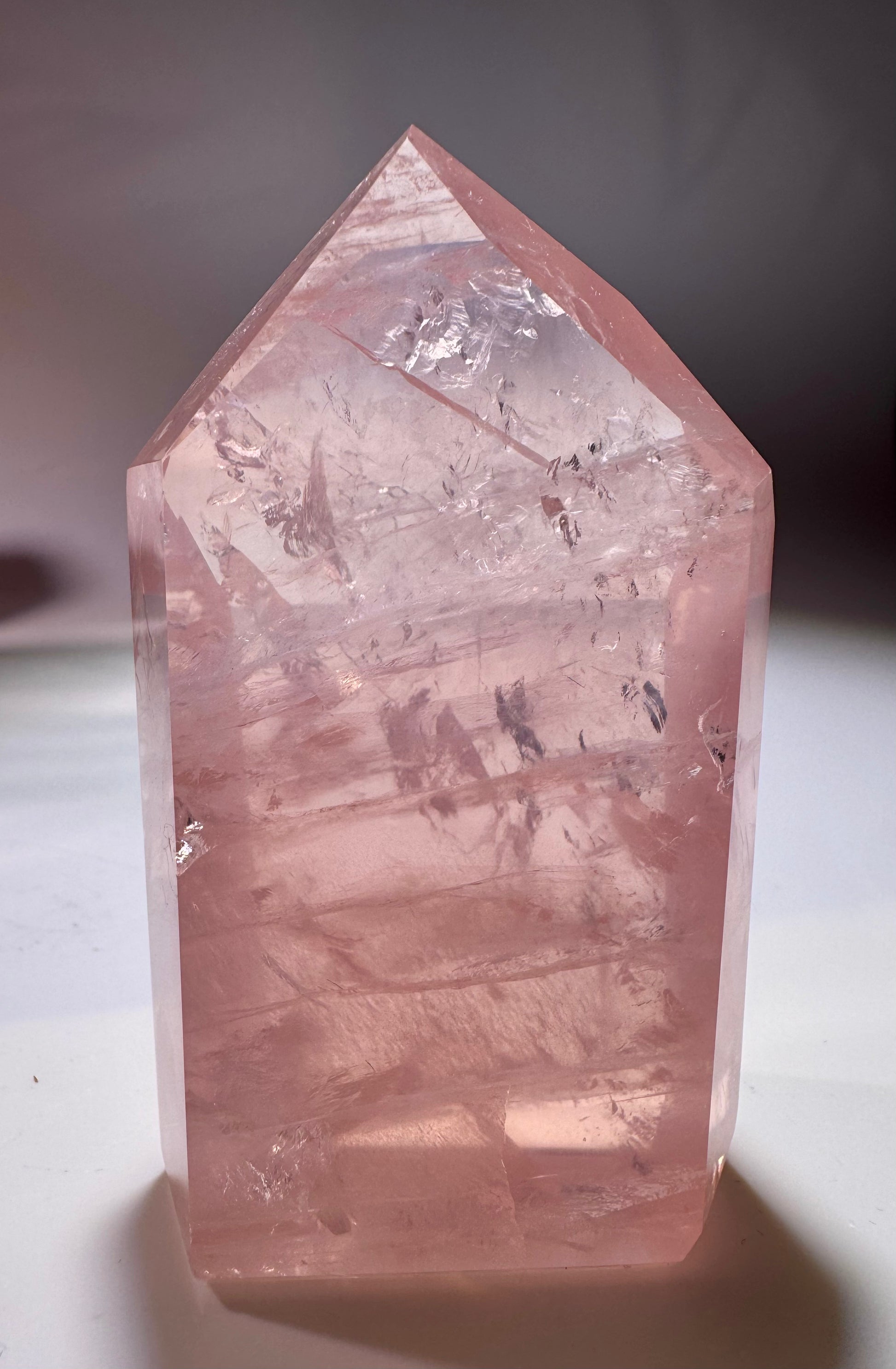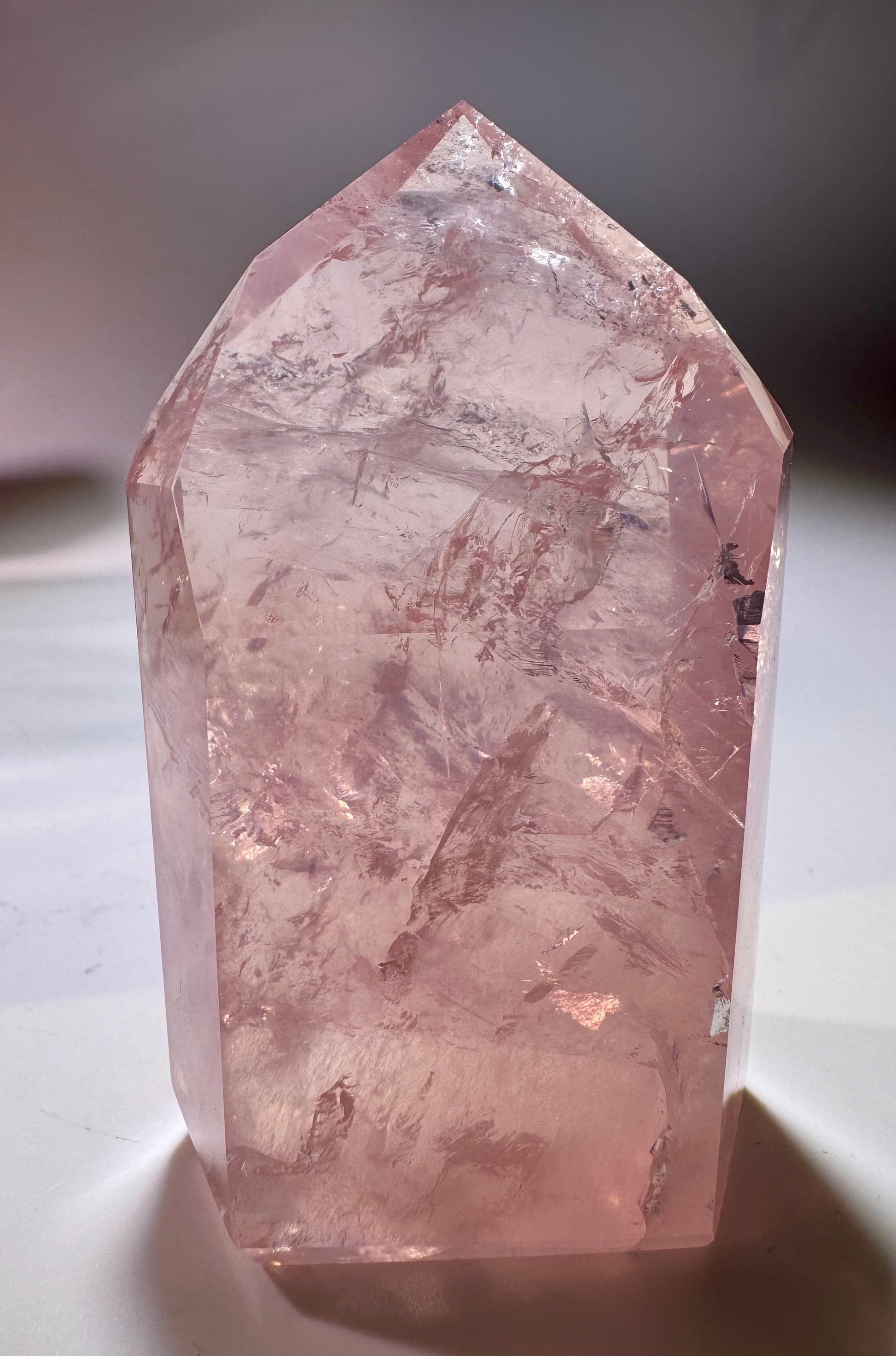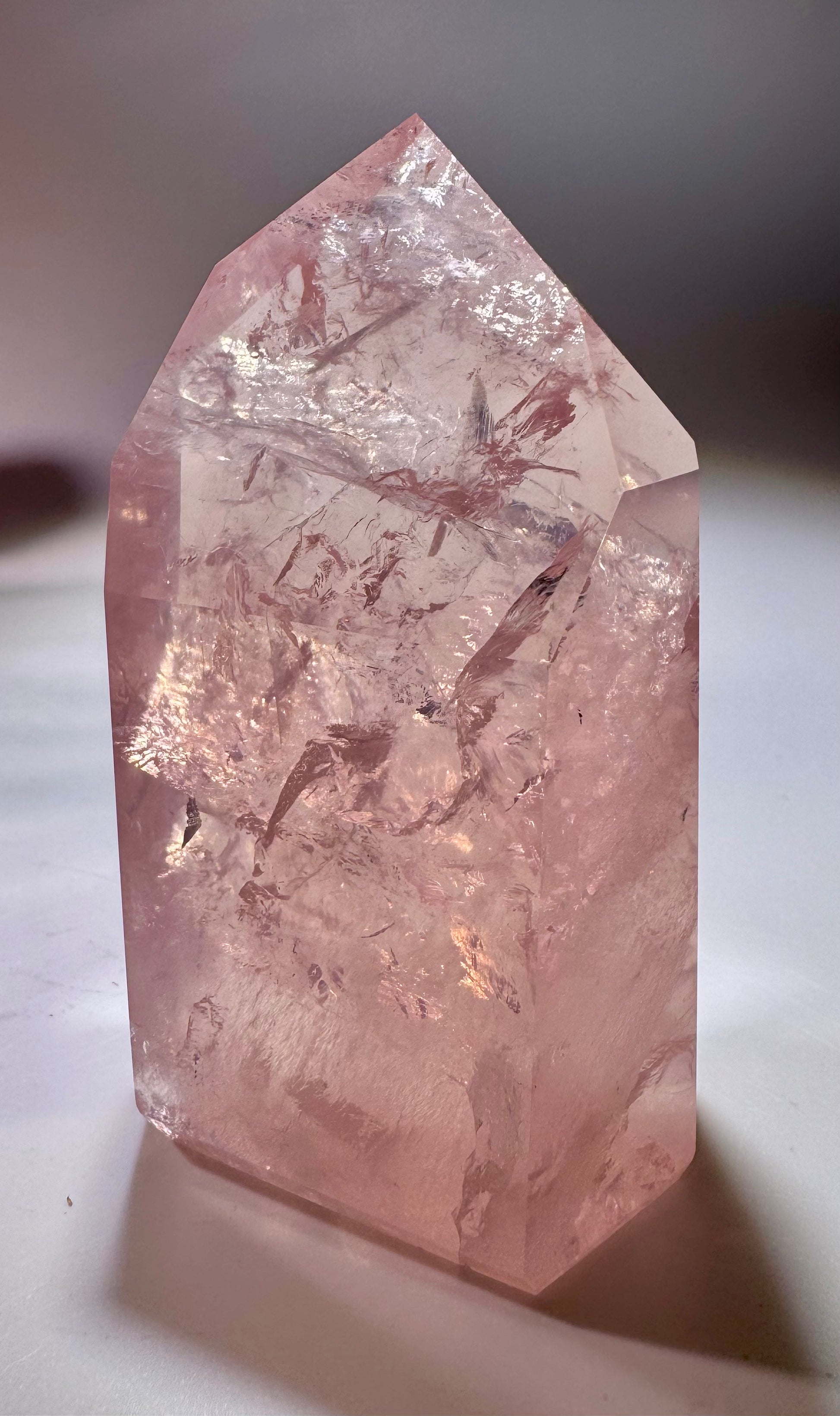 Der Kristall strahlt natürliche Schönheit und Energie aus. Sein klares Rosa reflektiert das Licht sanft und verstärkt die ästhetische und energetische Wirkung. Diese Spitze ist ein perfektes Stück für Sammler, Meditationsräume oder dekorative Aufstellungen.
