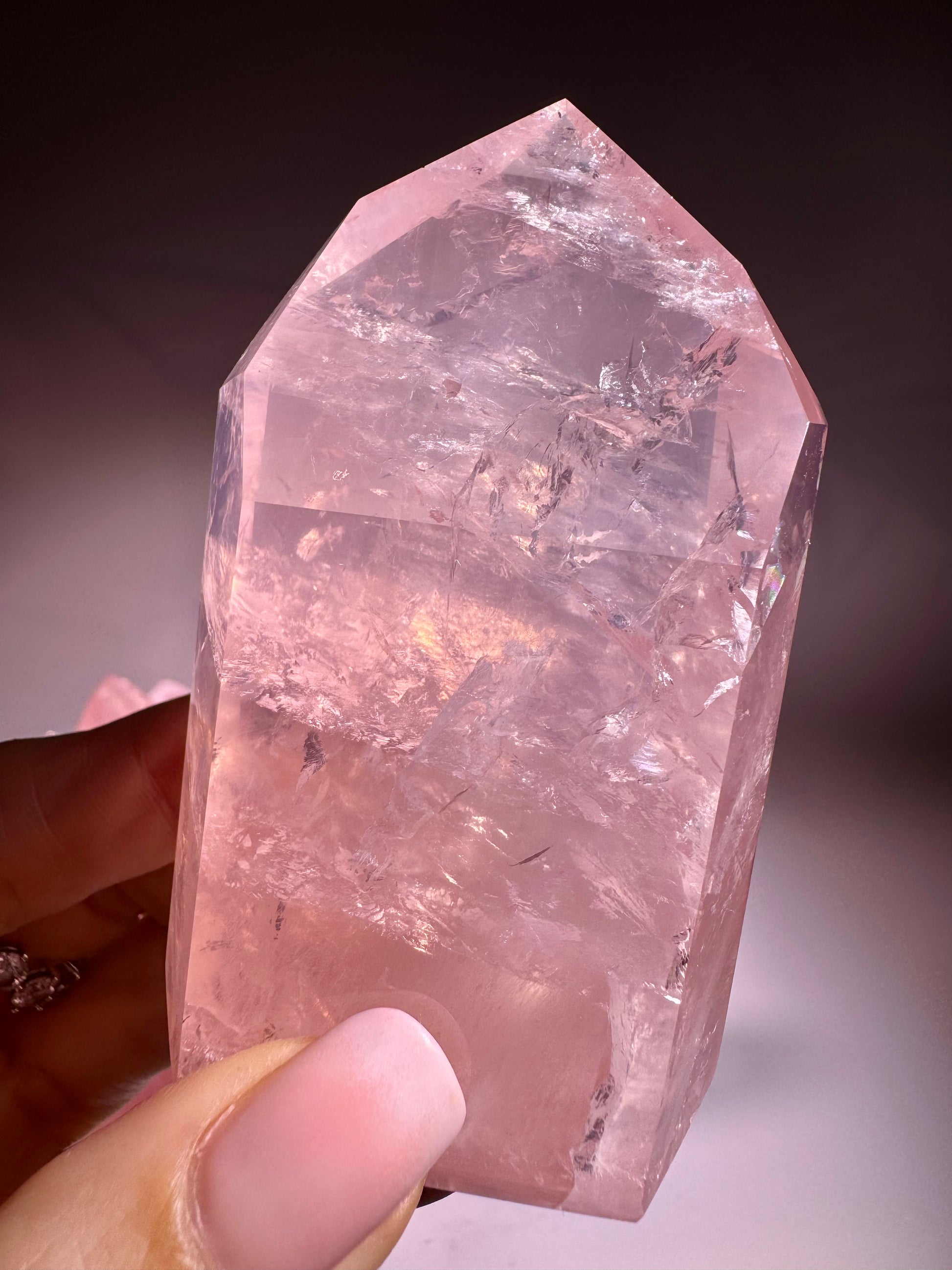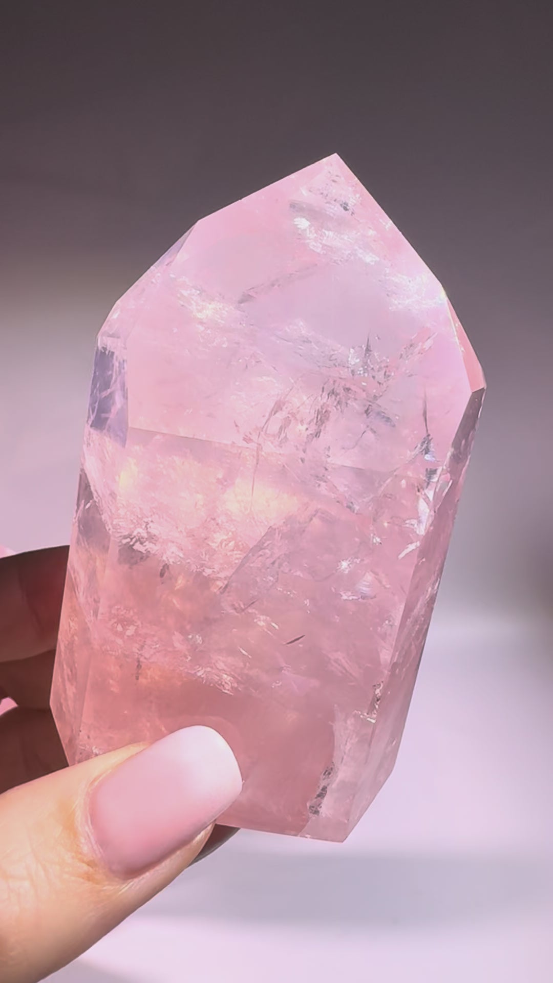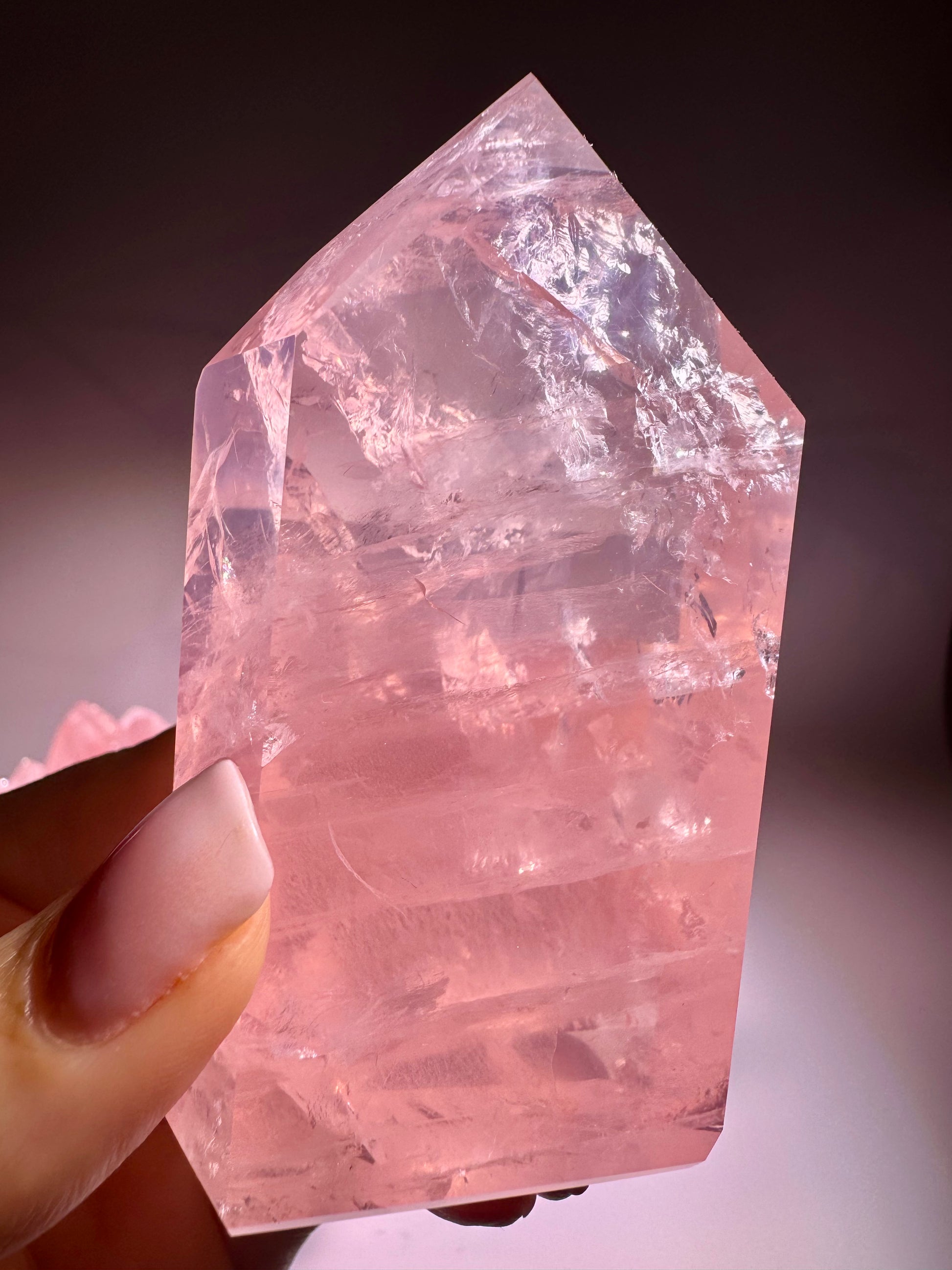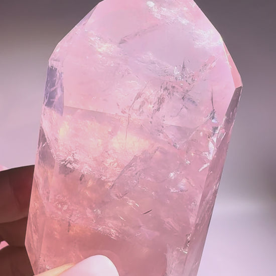 Diese Rosenuarzspitze ist ein aussergewöhnlicher Naturkristall in einem intensiven, zart himbeerfarbenen Rosa. Die Farbe ist vollständig natürlich, nicht gefärbt. Mit einer Höhe von 8 cm und einem Gewicht von 180 g ist sie ein besonderes Sammlerstück. Anders als normaler Rosenquarz, der oft dicht und undurchsichtig ist, ist dieser Kristall klar, leuchtend und extrem farbintensiv, was ihn besonders selten und eindrucksvoll macht.