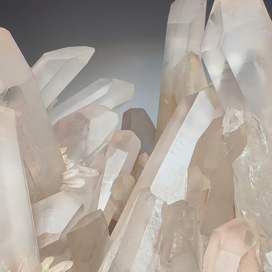 Die feine roséfarbene Nuance entsteht durch minimale mineralische Einlagerungen im Kristallgitter. Diese geben dem Quarz seinen sanften, warmen Schimmer und machen jedes Stück zu einem Unikat.