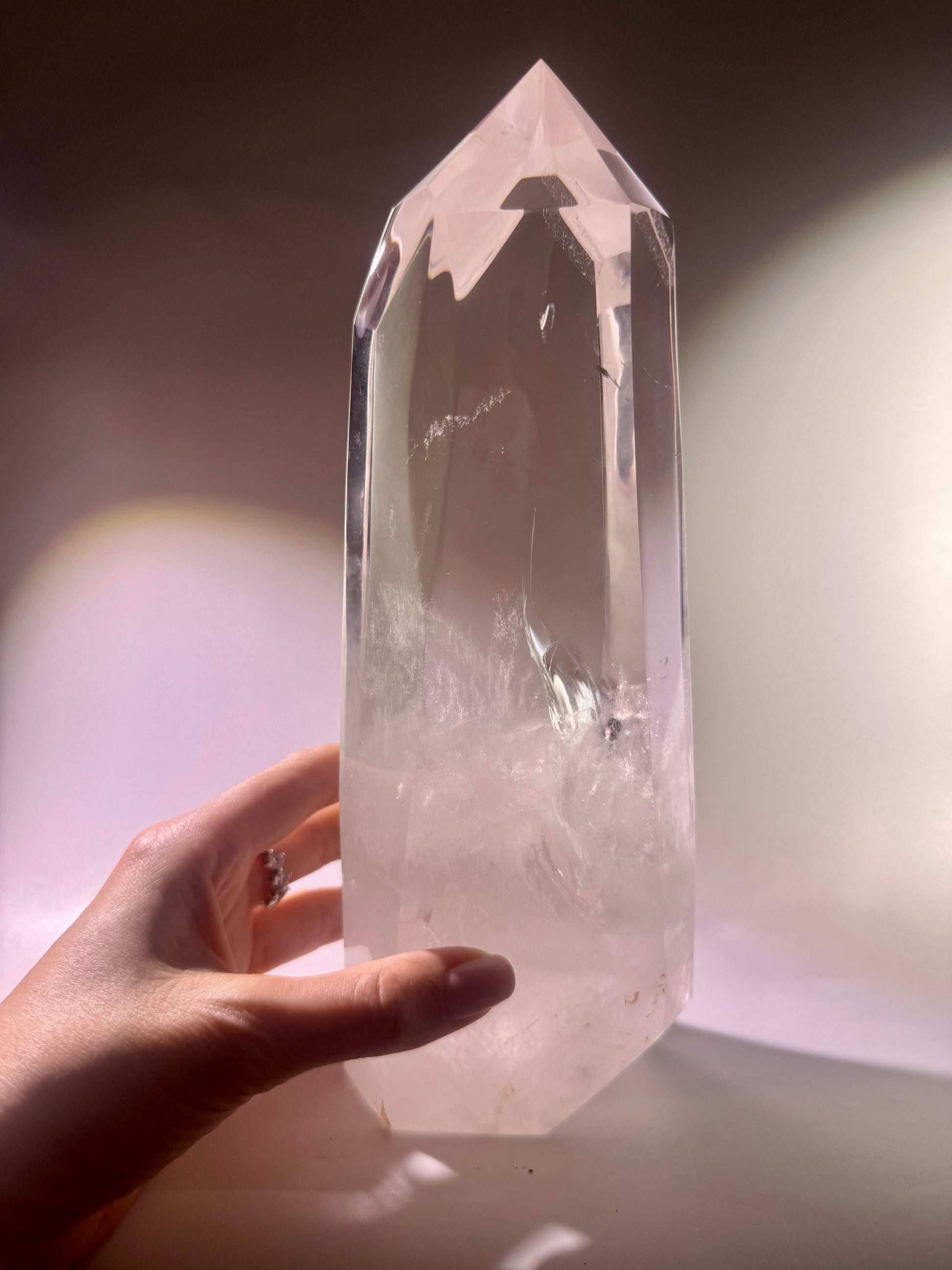 Durch seine klare Struktur kann Bergkristall Energie aufnehmen, bündeln und wieder abgeben. Diese Spitze eignet sich besonders, um Räume energetisch zu reinigen und zu stabilisieren.
