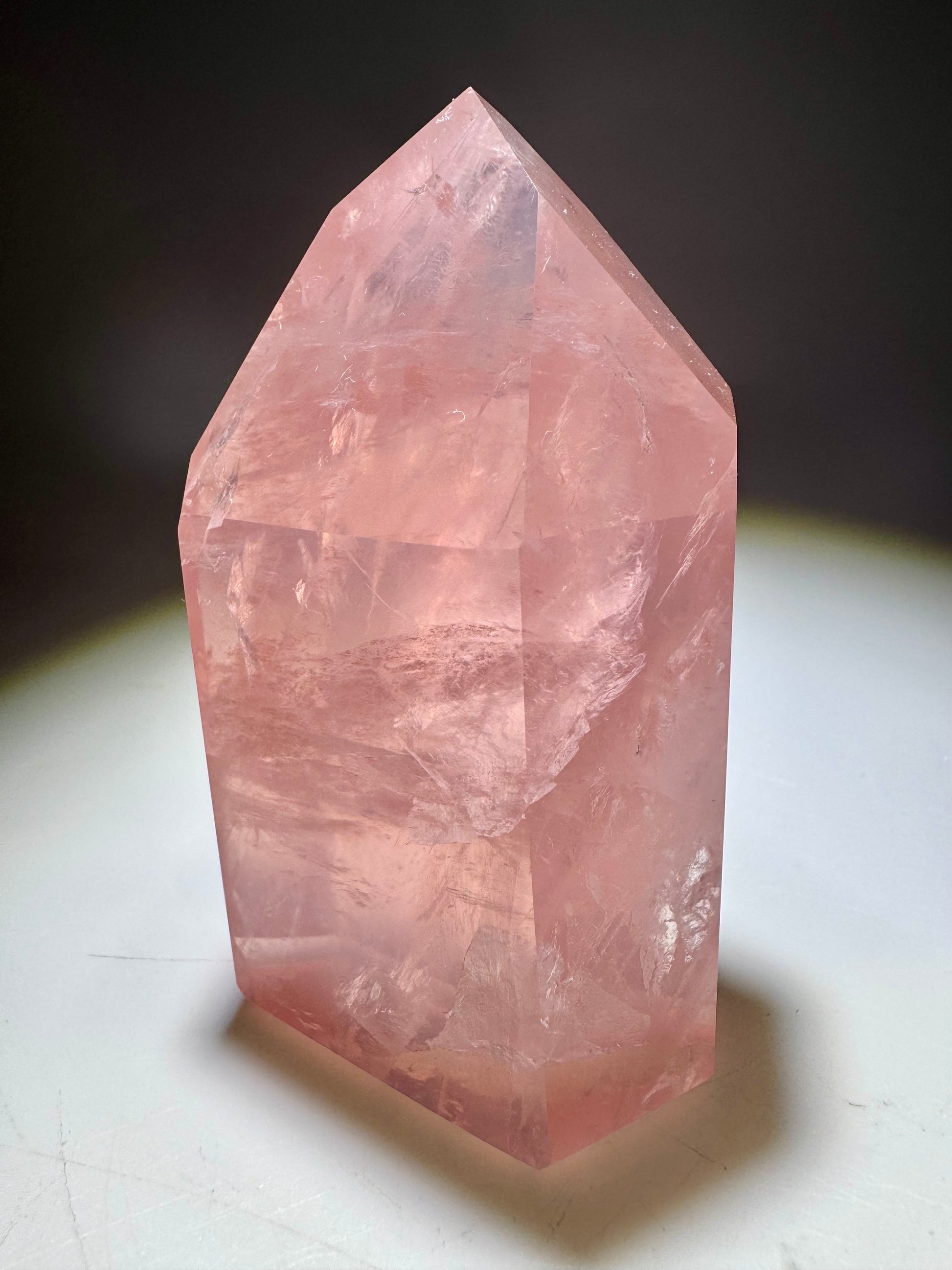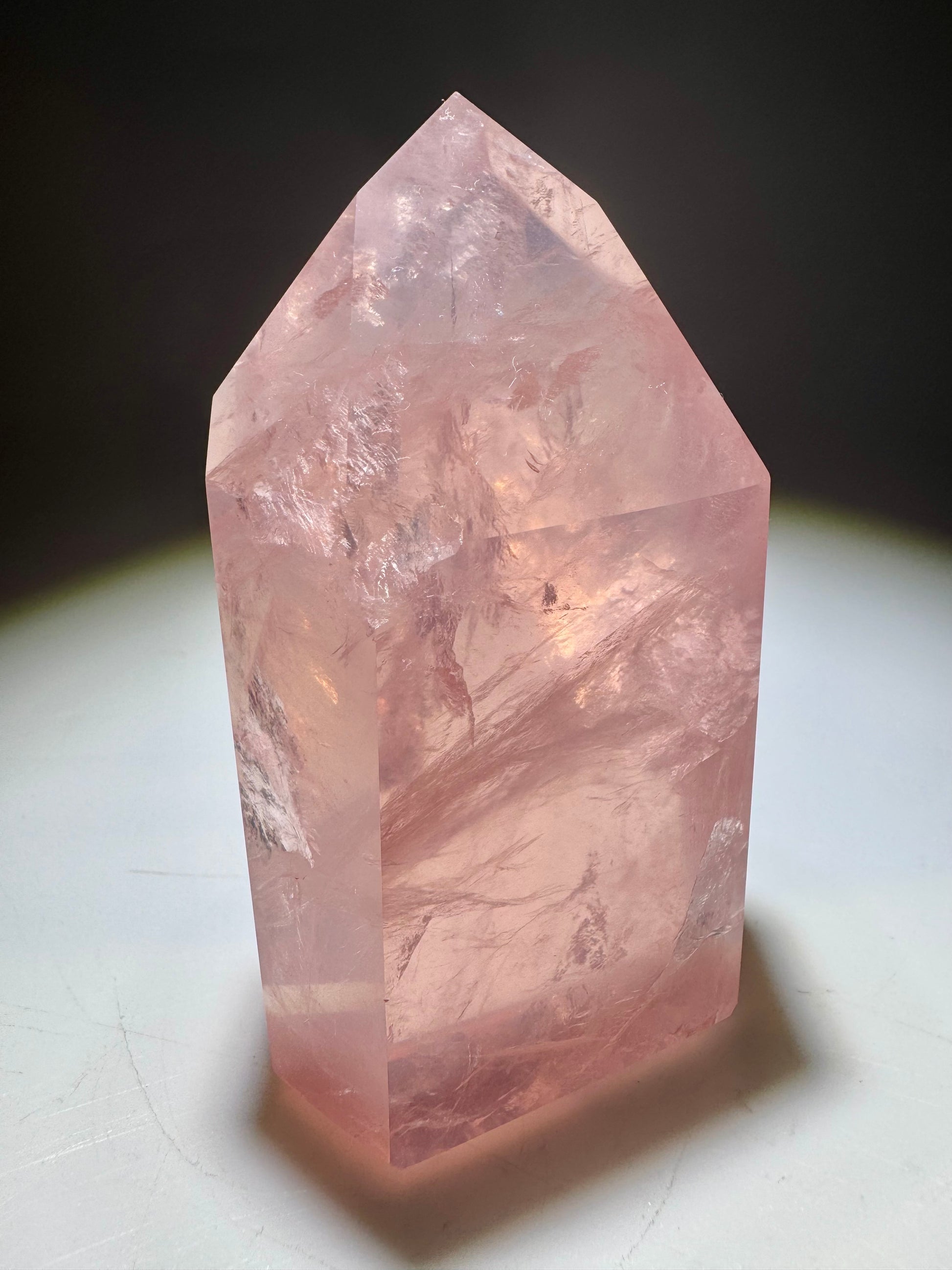 Der Kristall strahlt natürliche Schönheit und Energie aus. Sein klares Rosa reflektiert das Licht sanft und verstärkt die ästhetische und energetische Wirkung. Diese Spitze ist ein perfektes Stück für Sammler, Meditationsräume oder dekorative Aufstellungen.