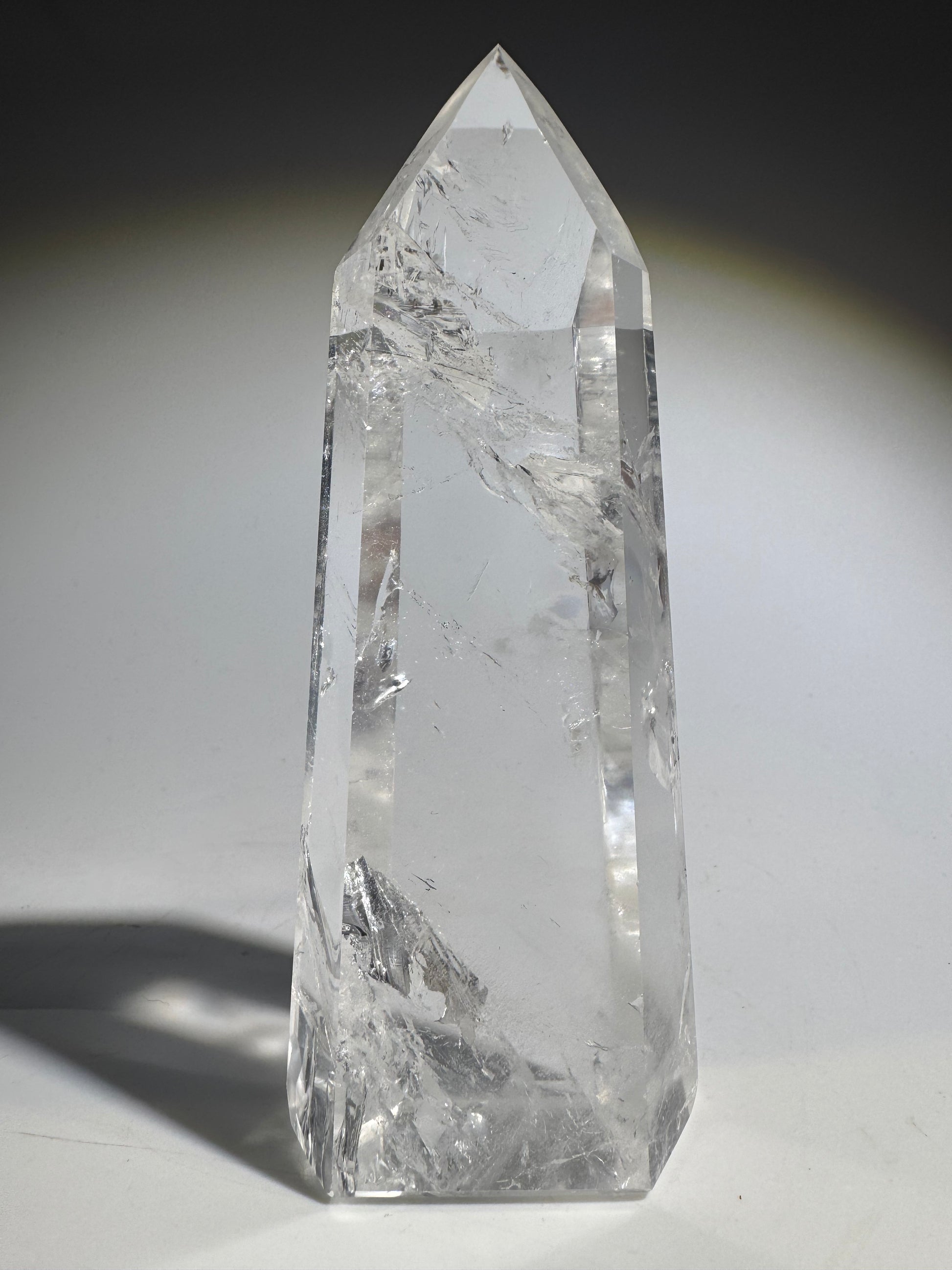 Dieser Bergkristall stammt aus Bahia, Brasilien, einer der bedeutendsten Regionen für aussergewöhnlich klare Quarzkristalle. Bergkristalle entstehen tief im Erdinneren durch hydrothermale Prozesse, bei denen siliziumreiches Wasser über Millionen von Jahren langsam kristallisiert. Die aussergewöhnliche Klarheit ist das Ergebnis von stabilen Bedingungen, Zeit und natürlicher Perfektion.