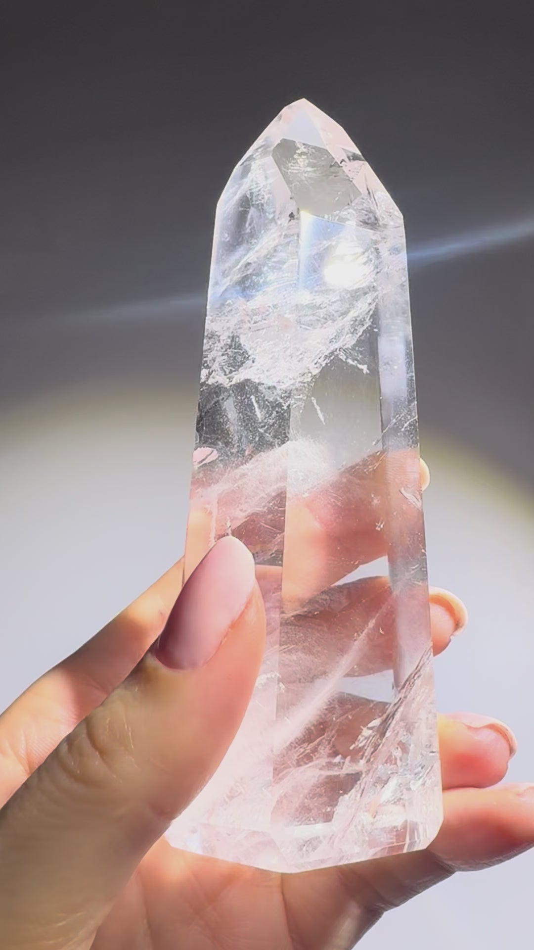 Bergkristall 12 cm, 229 g, mit intensivem innerem Funkeln – Sammlerstück & Energiestein
