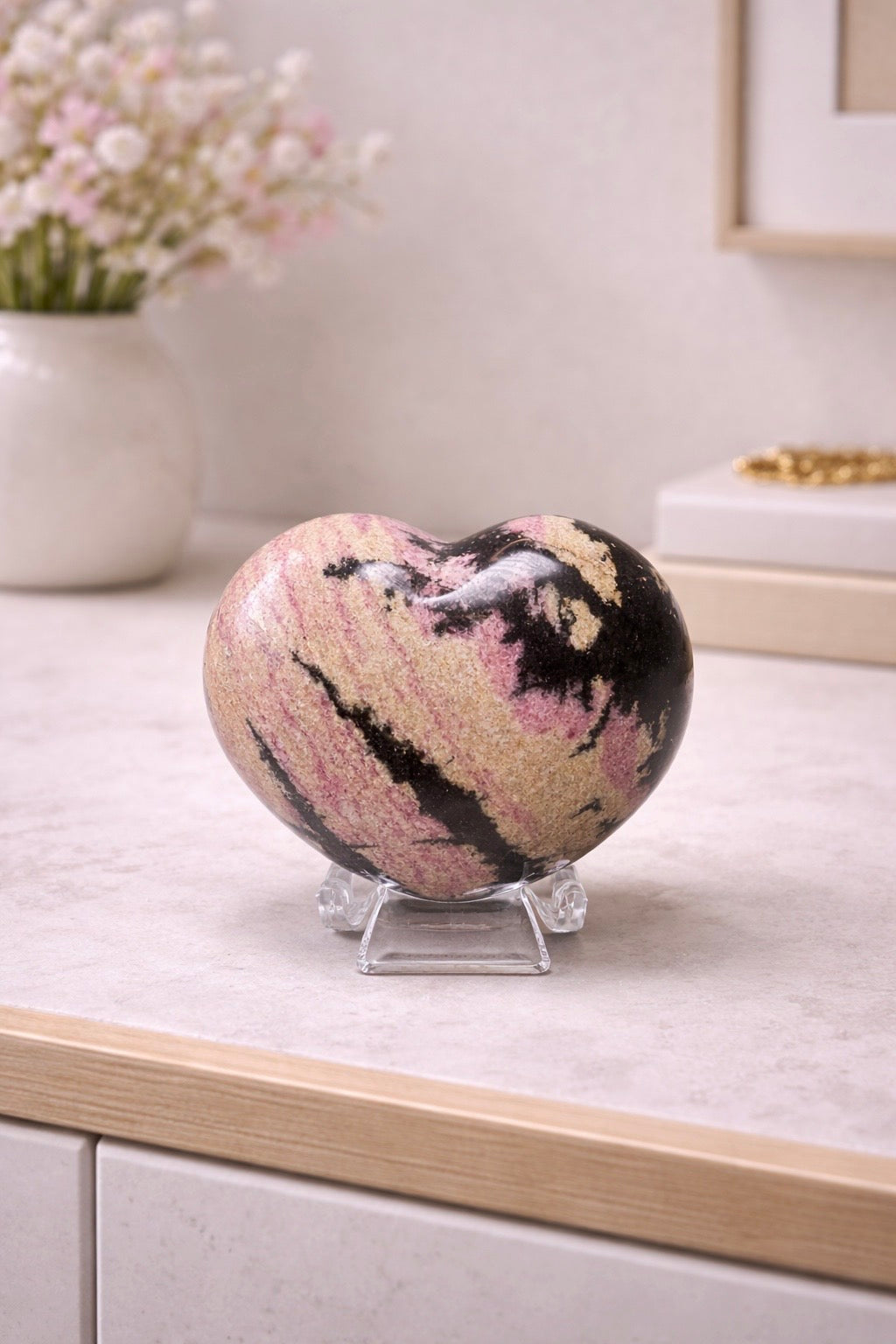 Ideal für Sammler und Liebhaber seltener Kristalle, bringt dieses Rhodonit-Herz natürliche Schönheit in Ihr Zuhause.