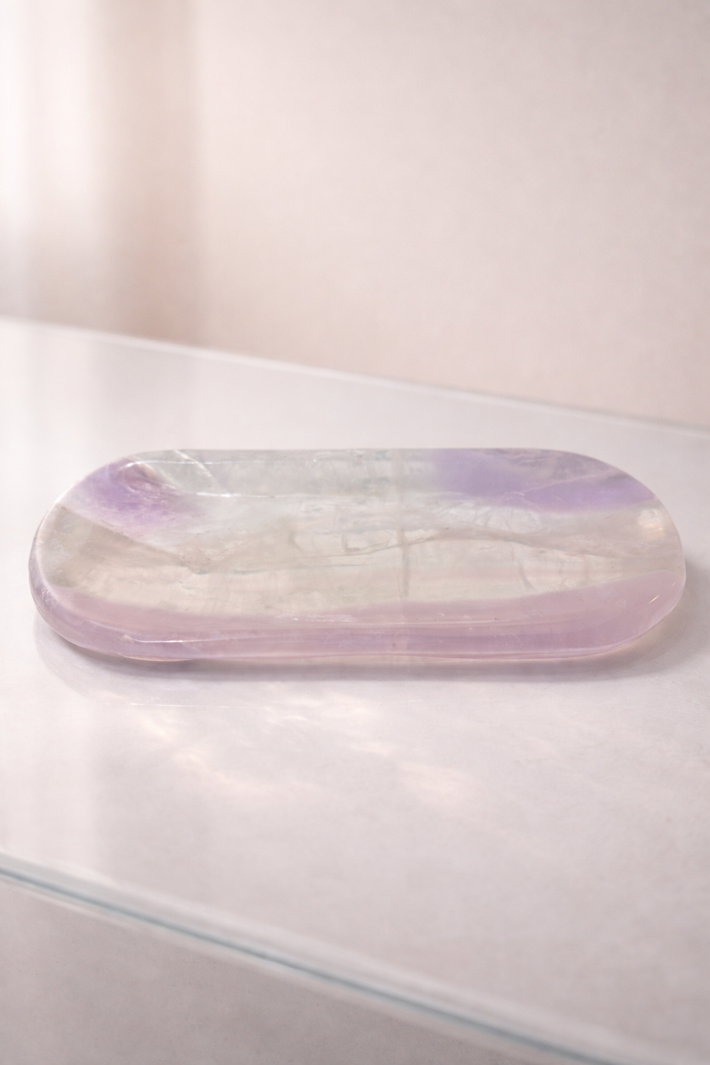 Fluorit ist bekannt für seine klärenden und strukturierenden Eigenschaften – er stärkt den Fokus, beruhigt den Geist und fördert die innere Ordnung. Perfekt zur Aufbewahrung deiner liebsten Kristalle, Schmuckstücke oder einfach als besonderer Blickfang in deinem Zuhause 🕊️