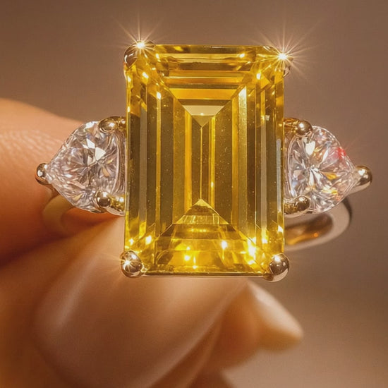 This ring was crafted with great attention to detail—the warm glow of the citrine combined with the radiant moissanite hearts makes it a piece of jewelry that makes hearts beat faster. Perfect as a gift for a special someone or as a precious companion for yourself 💛