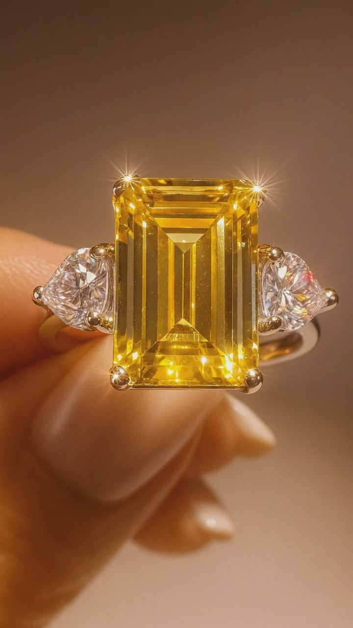A beautiful citrine ring (925 silver) in a sophisticated design – the clear, sparkling citrine is flanked by two shimmering moissanite hearts , giving it a particularly romantic and luxurious look ✨💛🤍