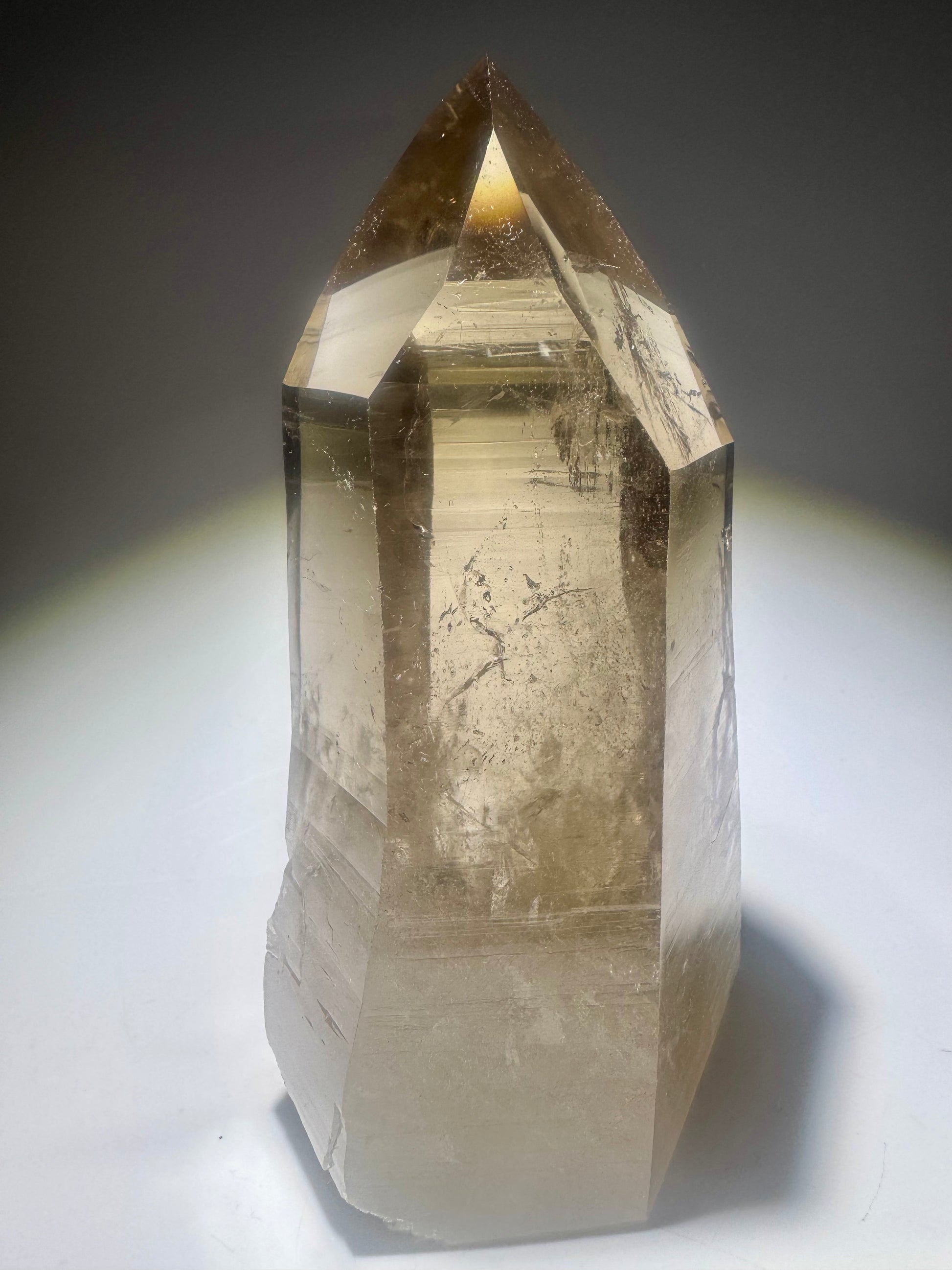 Diese Lemurian Rauchquarzspitze ist ein beeindruckendes Naturstück mit kraftvoller Präsenz – ideal als besonderes Sammlerstück, für Meditation oder als einzigartiger Kristall für einen besonderen Platz im Raum.
