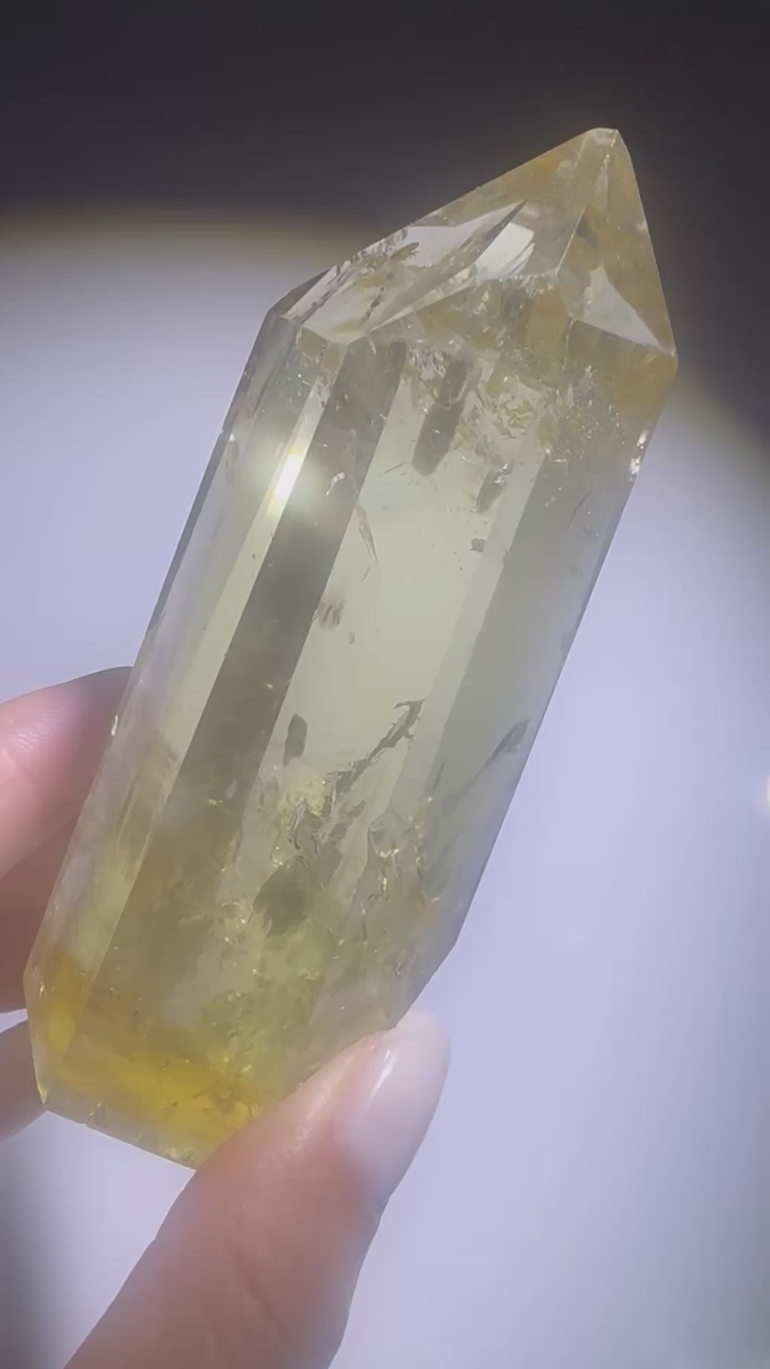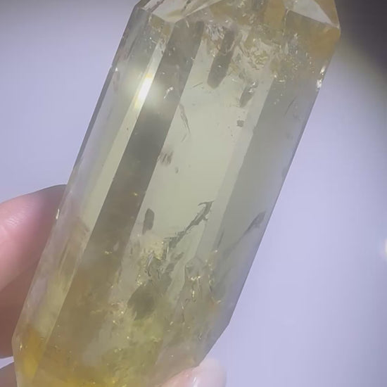 Cette citrine de haute qualité, limpide et puissante, est le fruit d'un processus géologique impressionnant qui a nécessité des millions d'années de formation. La citrine se forme au plus profond du noyau terrestre, sous des températures extrêmes et une forte pression. Elle doit son jaune clair et ensoleillé à des composés de fer naturels, qui lui confèrent sa couleur caractéristique. Seules des conditions parfaites permettent la formation d'une citrine d'une telle pureté et d'une telle clarté – une véritable rareté dans la nature.