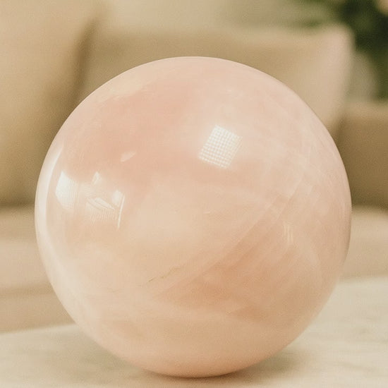 Sphère de quartz rose 15 cm – 5,3 kg – Pierre de cœur pour l’amour et l’harmonie