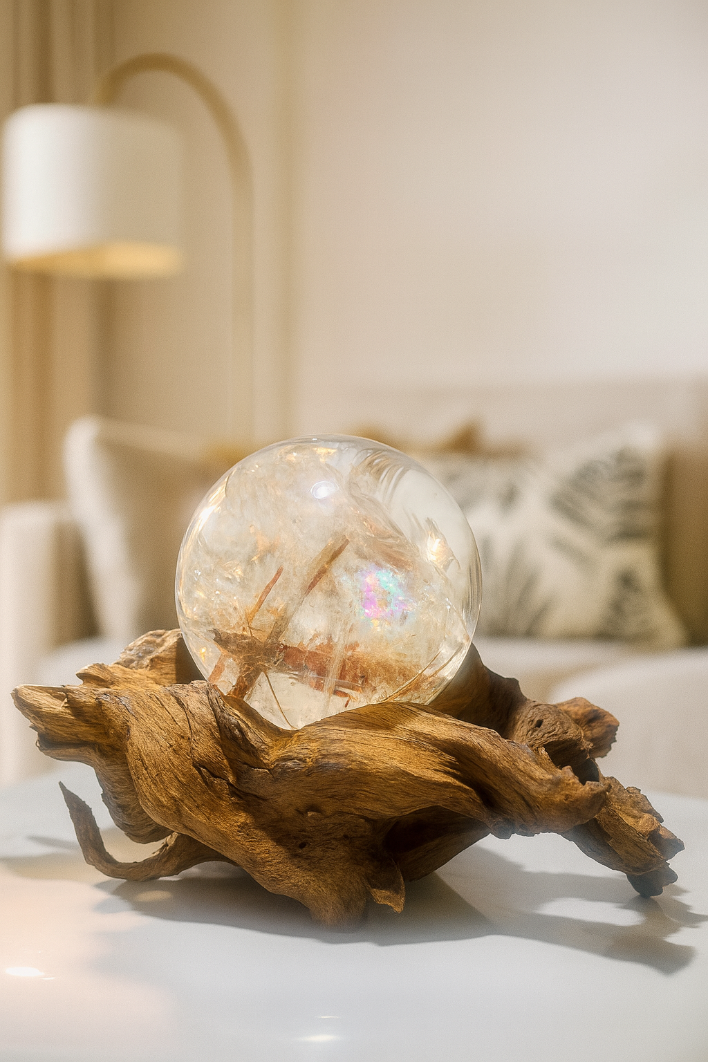 Die Kombination von Epidot und Bergkristall verstärkt nicht nur die visuelle Schönheit, sondern bringt auch eine kraftvolle energetische Wirkung mit sich. Die Epidotnadeln verleiht der Kugel eine zusätzliche Dimension und verstärkt die bereits vorhandenen positiven Eigenschaften des Bergkristalls.