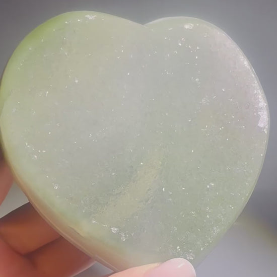 Dieses Achat-Herz entstand über Millionen von Jahren, als sich mineralreiche Lösungen in Hohlräumen der Erde langsam kristallisierten. Die unzähligen Funken und kristallinen Strukturen sind das Ergebnis eines langsamen Wachstumsprozesses, der jedem Herzstück seine einzigartige Form, Farbe und Lebendigkeit verleiht.
