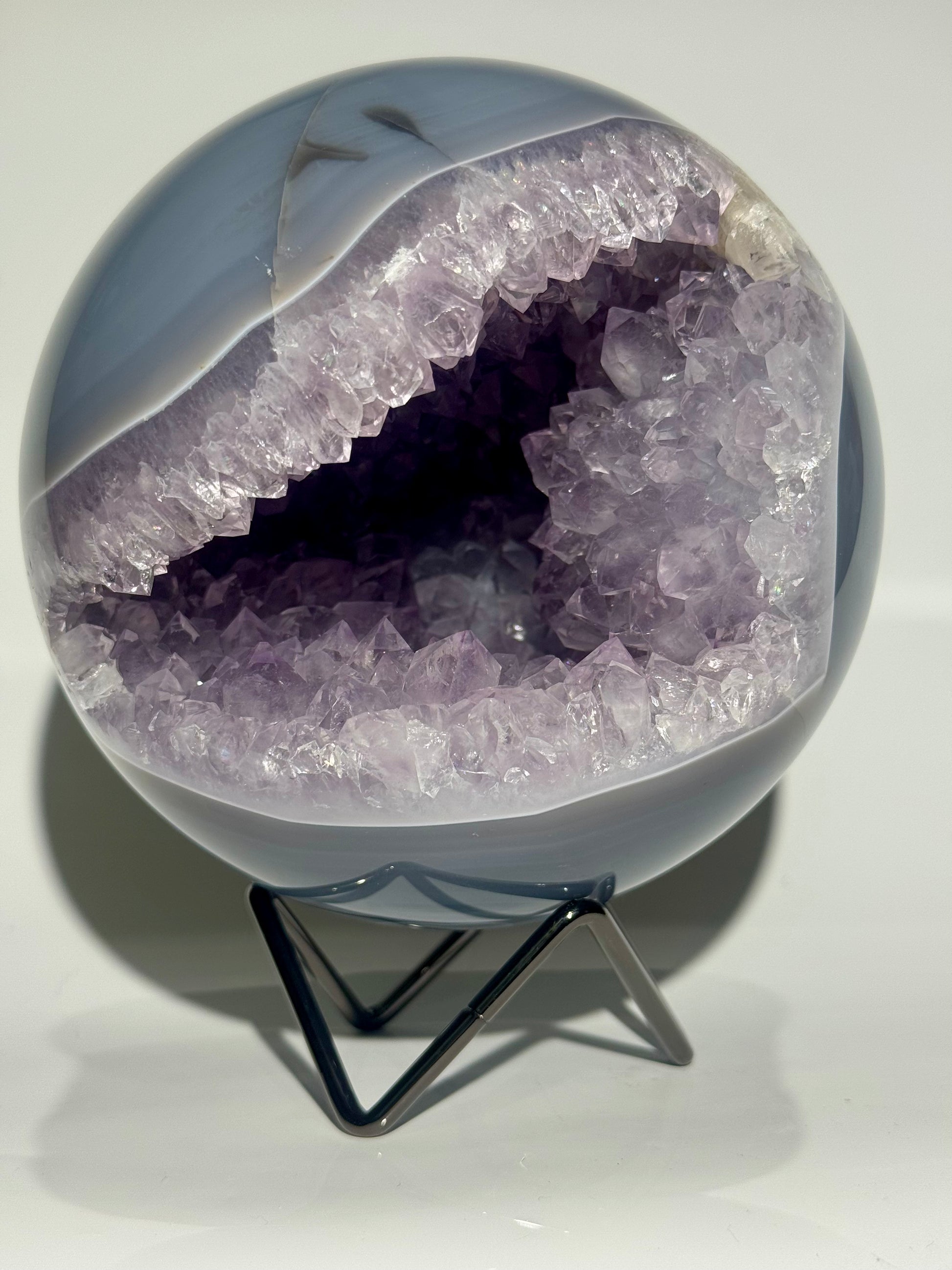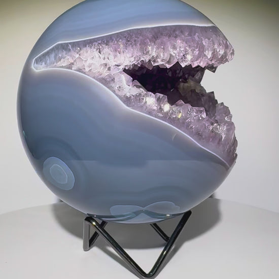 Traumhafte exklusive Achat-Kugel 12,5 cm – 2,99 kg aus Brasilien mit grossen Kristallen