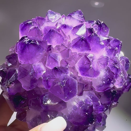 Während hellere Amethyste mit Leichtigkeit und Harmonie in Verbindung stehen, gilt tiefvioletter Amethyst als Stein der inneren Weisheit, Schutzkraft und Transformation.
