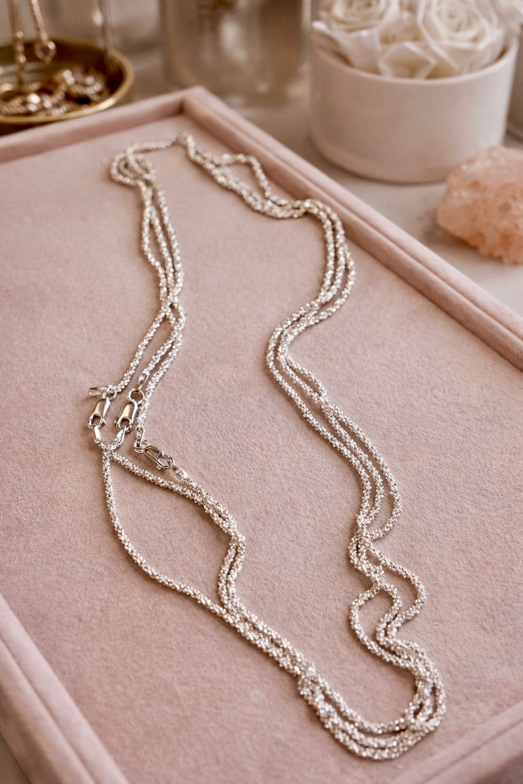 Mit 42, 45 oder 50 cm Länge liegt sie perfekt am Hals an und harmoniert ideal mit Anhängern – besonders mit energetischen Kristall- oder Meteoritenstücken. Die Kette ist robust, gleichzeitig fein und geschmeidig, und trägt sich angenehm ohne zu verdrehen.