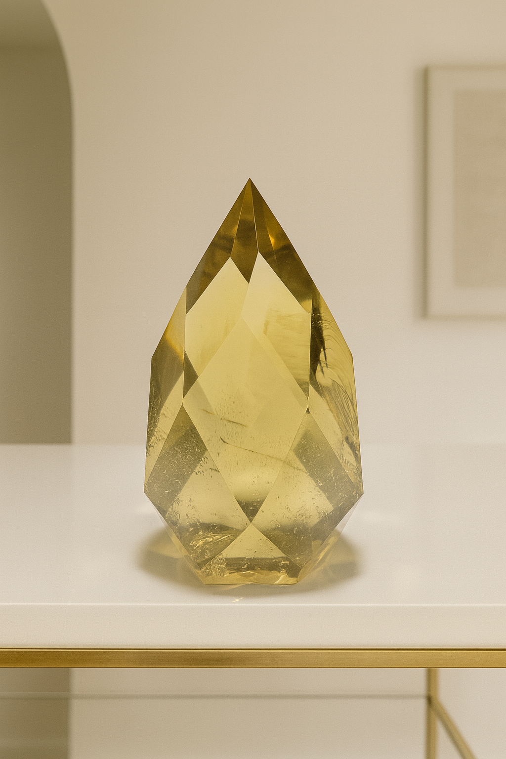 Dieses edle Citrin-Ornament aus Brasilien begeistert durch seine strahlende Klarheit, kunstvolle Facettierung und einen natürlichen Phantom im Inneren – ein faszinierendes Zusammenspiel von Licht, Wärme und innerer Struktur. ☀️🌿