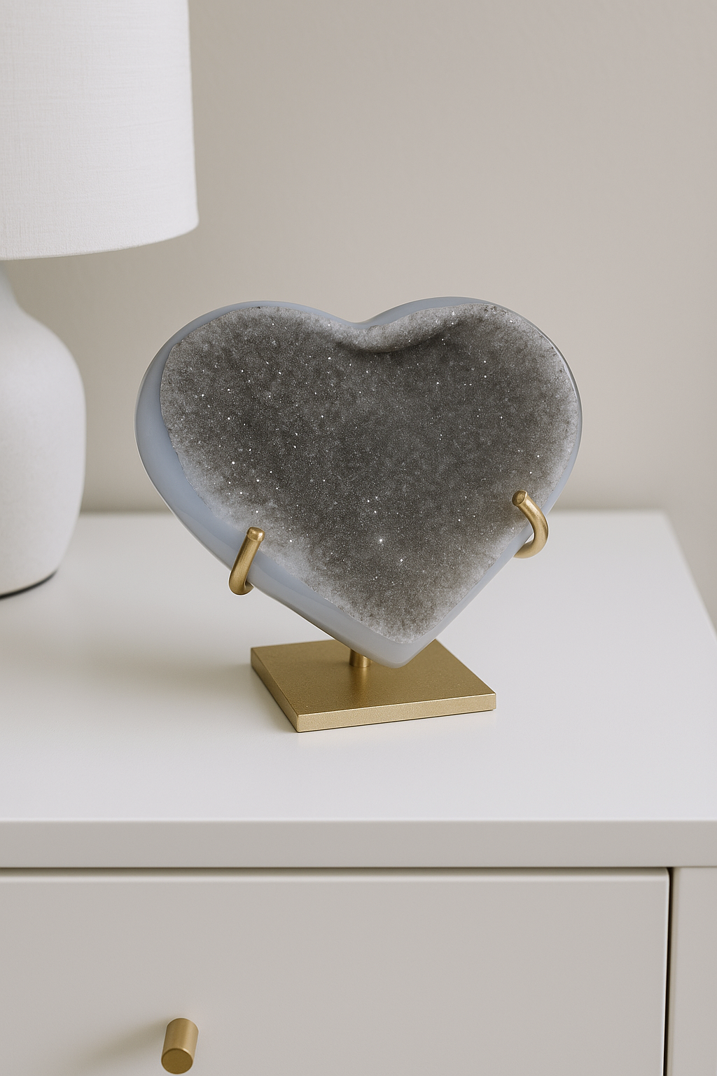 Dieses bezaubernde Achat-Herz ist ein echtes Kunstwerk der Natur 💎 – handverlesen in Brasilien 🇧🇷 und in liebevoller Handarbeit in Herzform geschliffen. Seine Oberfläche funkelt wie ein Sternenhimmel, durchzogen von winzigen Kristallen, die bei Lichteinfall glitzern wie eine Galaxie aus Licht 🌌✨