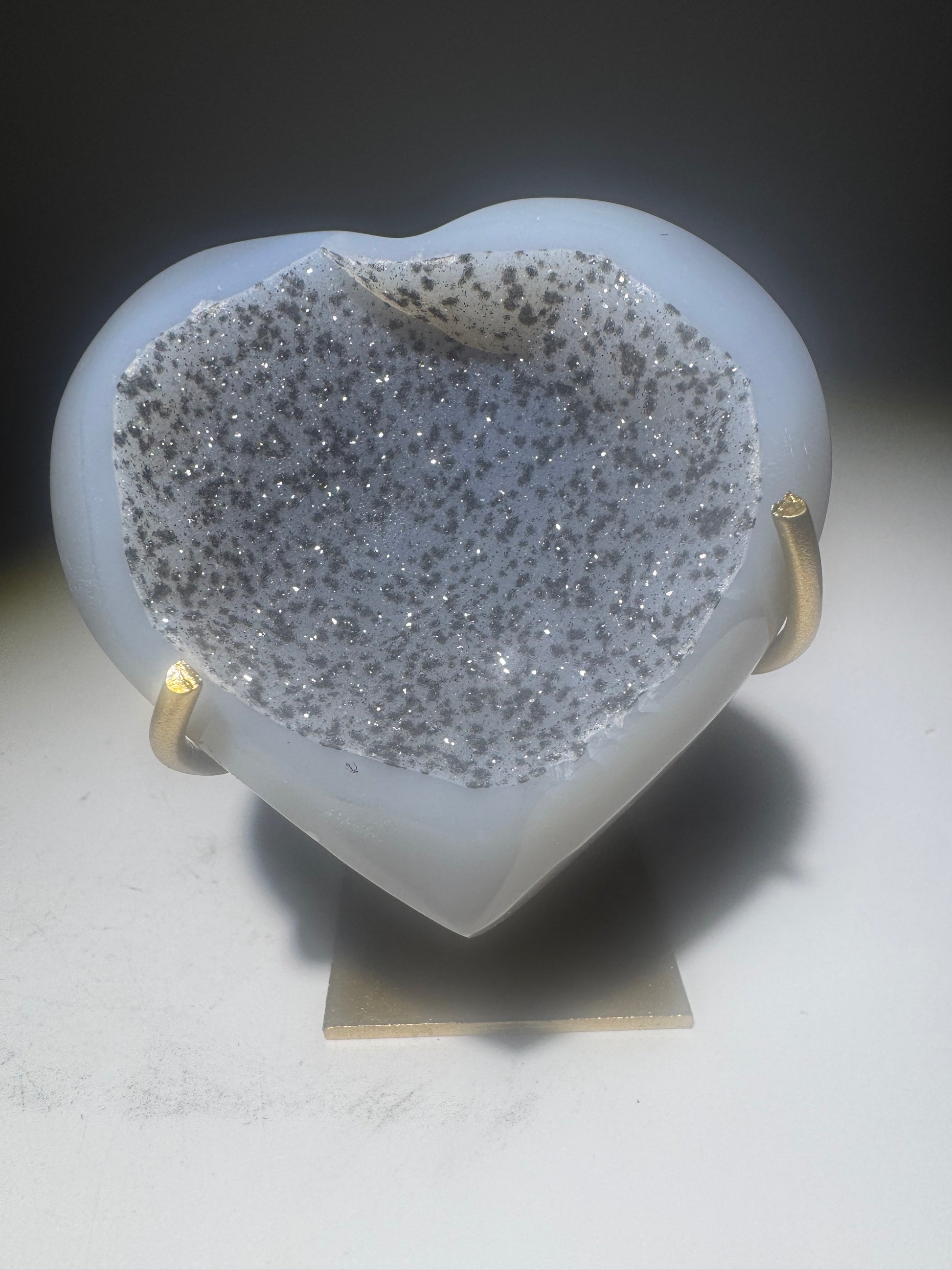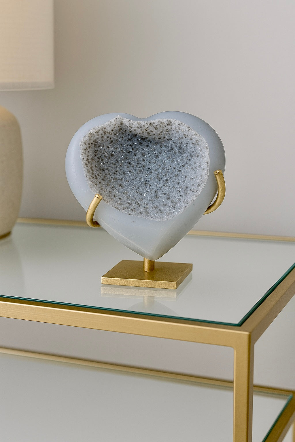 🌟 Besonders edel präsentiert sich dieses Herz auf einem hochwertigen, goldenen Metallständer, der eigens dafür angefertigt wurde – perfekt, um es stilvoll in Szene zu setzen. Diese Qualität ist selten und schwer zu finden – ein echtes Sammlerstück für Liebhaber*innen besonderer Kristalle 💫.