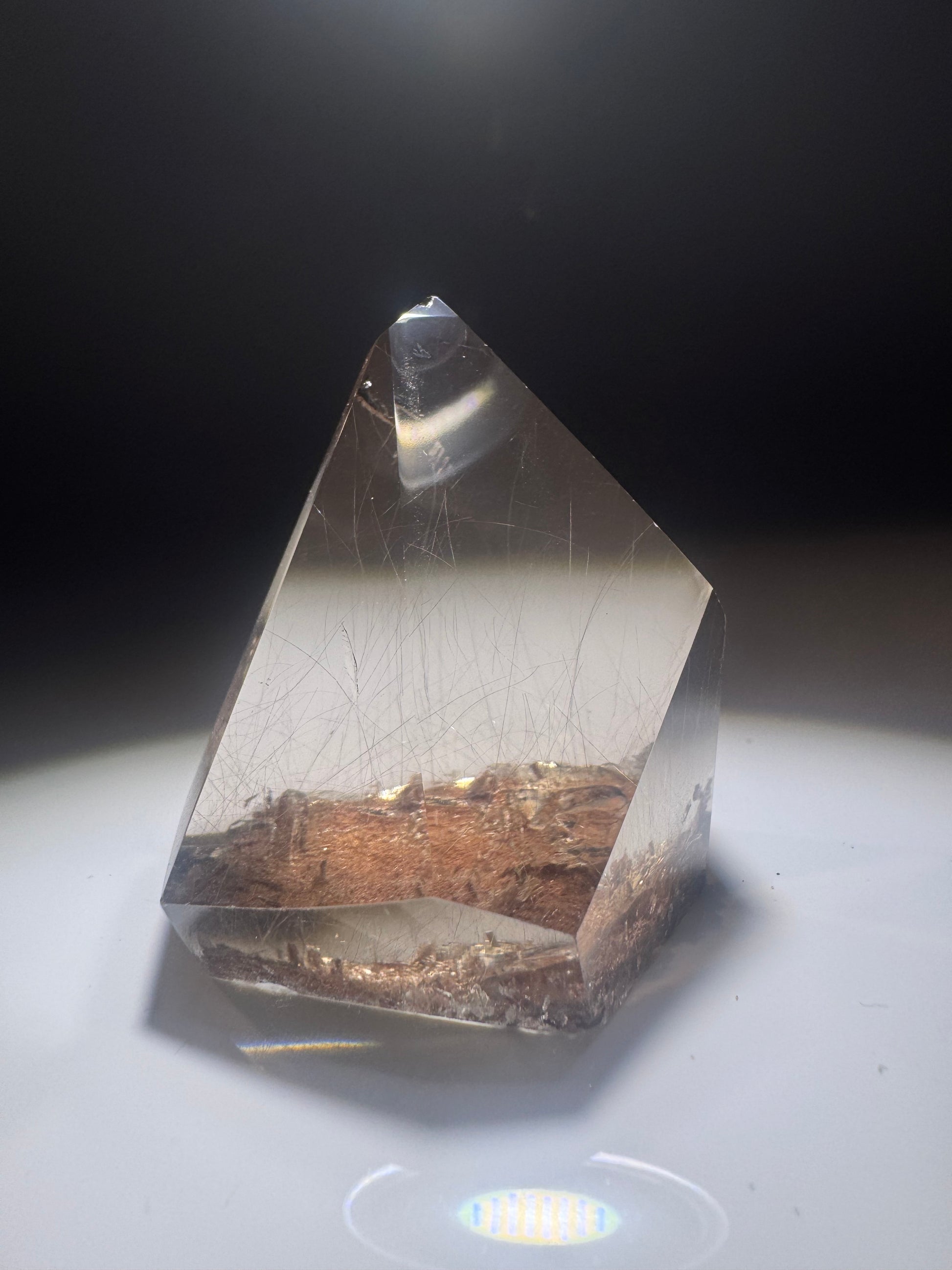 Tauche ein in die faszinierende Welt meines Golden Rutile Rauchquarzes – ein klarer, naturbelassener Rauchquarz von 5 x 4 cm, in dem hauchdünne goldene Rutilnadeln wie ein winziger Garten funkeln 🌟💛  Jede Nadel verläuft einzigartig und kreiert ein lebendiges, magisches Muster, das das Licht auf atemberaubende Weise bricht.
