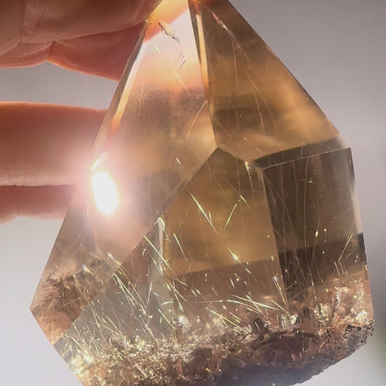 Dieser Kristall ist eine Rarität und ein echtes Museumsstück – perfekt für Sammler, als dekoratives Highlight oder als energetisches Schmuckstück. Die Entstehung von Golden Rutile ist ein Wunder der Natur: Feine Titanoxid-Nadeln wuchsen während der Kristallisation in den Rauchquarz hinein und verliehen ihm diese unvergleichliche, goldene Eleganz ✨💎