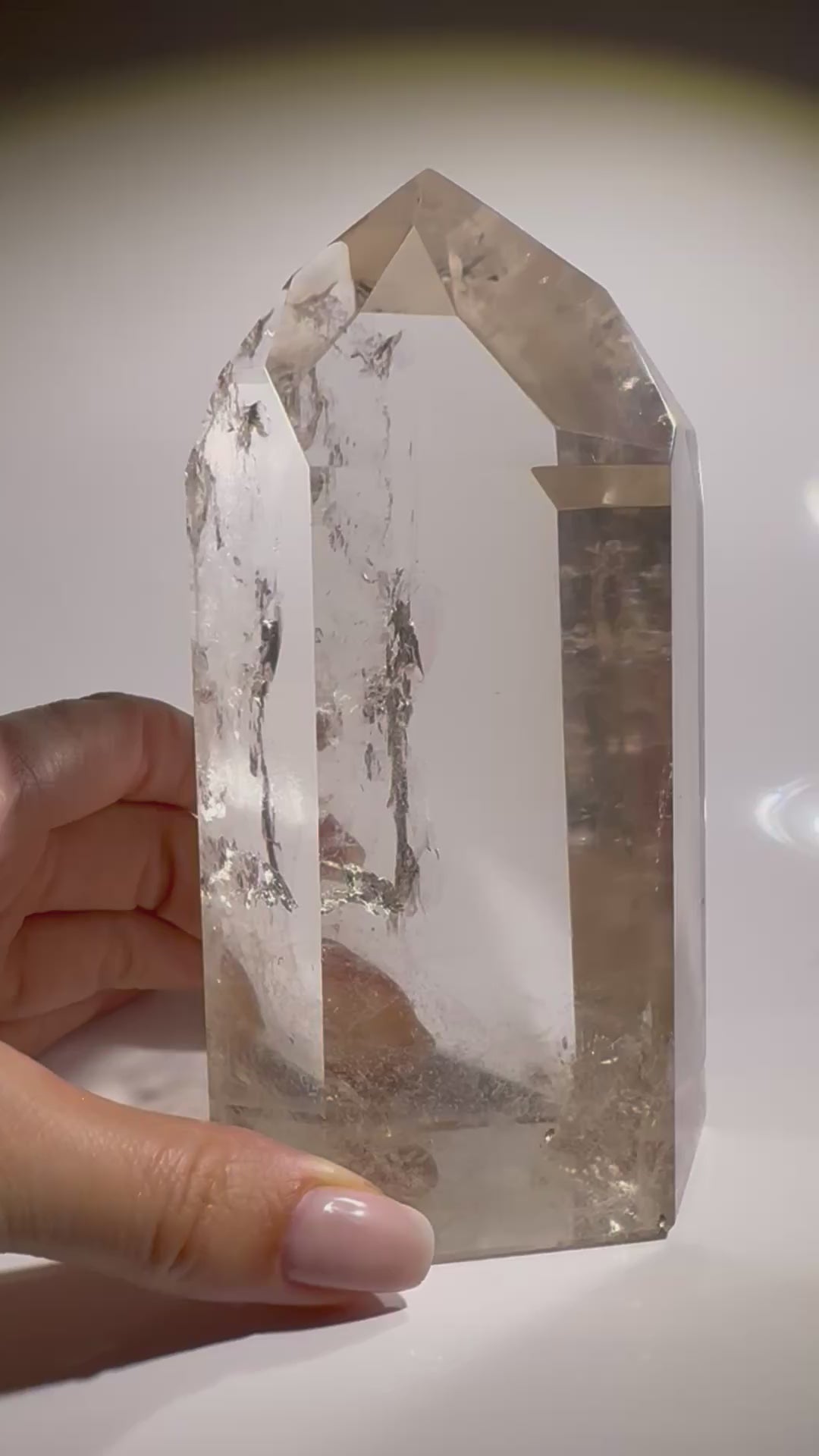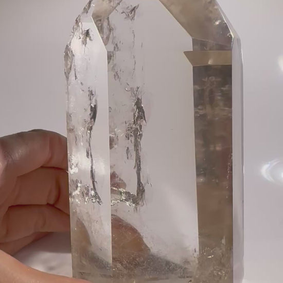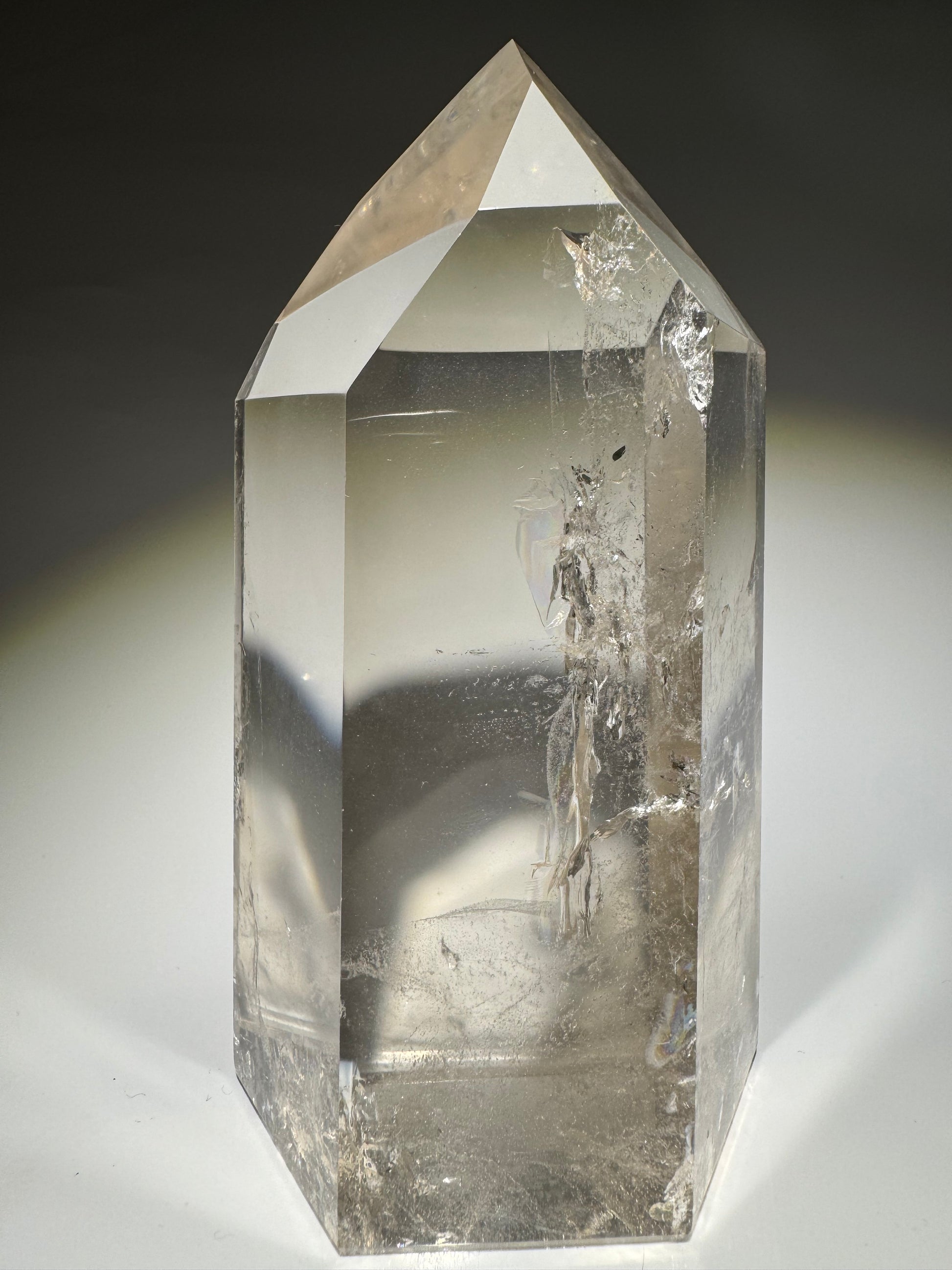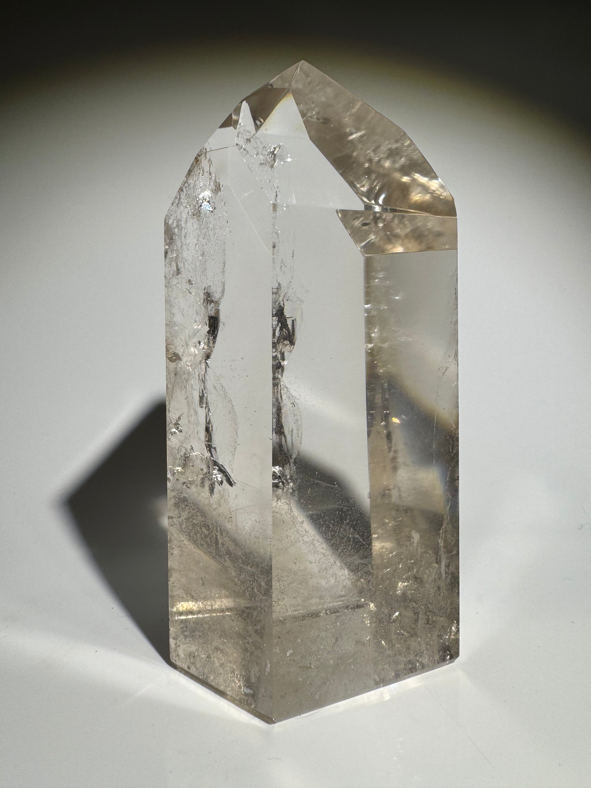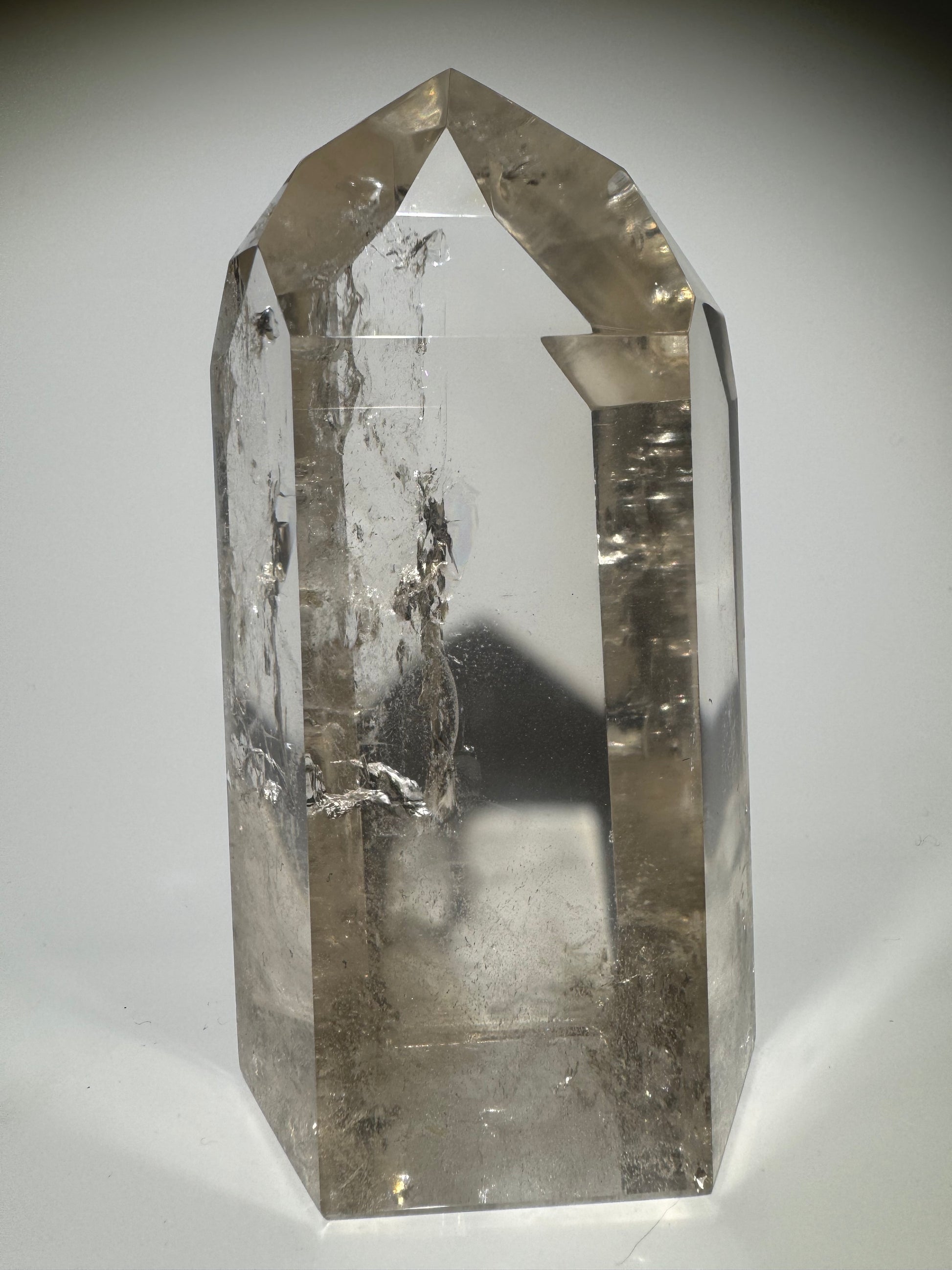 Exklusive ganz klare Rauchquarz Spitze mit Regenbogen - 14cm, 914g