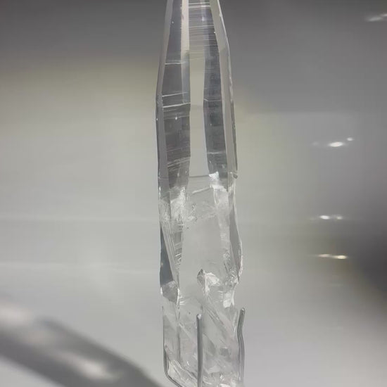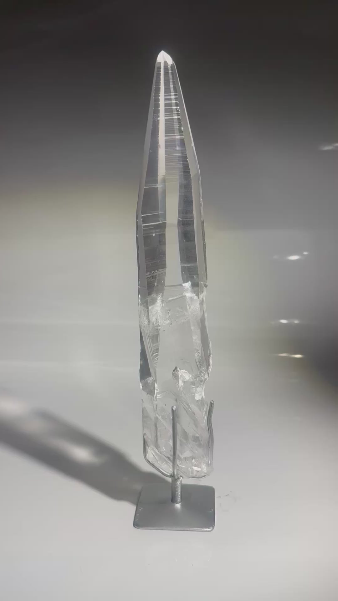 Das Innere der Spitze zeigt beim Drehen faszinierende Lichtspiele und lebendige Strukturen. Die Klarheit dieses Stücks ist atemberaubend – es wirkt, als wäre reines Licht in fester Form gebannt.