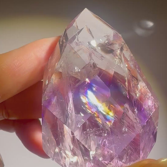 Wunderschönes Phantom-Amethyst Ornament – facettiert, mit Regenbogen & Phantom 💜🌈 - 6.3cm