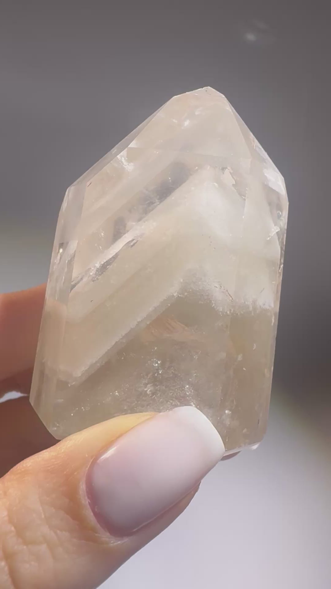 Dieser faszinierende Phantom-Bergkristall zeigt mehrere Kristalle, die ineinander verschachtelt sind – ein wahres Meisterwerk der Natur ✨ Der Entstehungsprozess dieses einzigartigen Kristalls ist ebenso beeindruckend. Im Laufe der Zeit wuchs der Bergkristall in mehreren Phasen, wobei neue Kristallschichten sich um den ursprünglichen Kristall bildeten  ⛅️💎 Zwischen diesen Schichten fingen sich mineralische Einschlüsse, die den "Phantom"-Effekt erzeugen und dem Kristall sein geheimnisvolles Aussehen verleihen 🌟 Jeder Blick auf diesen aussergewöhnlichen Kristall offenbart eine neue Dimension der Natur – faszinierend und einzigartig! 💖