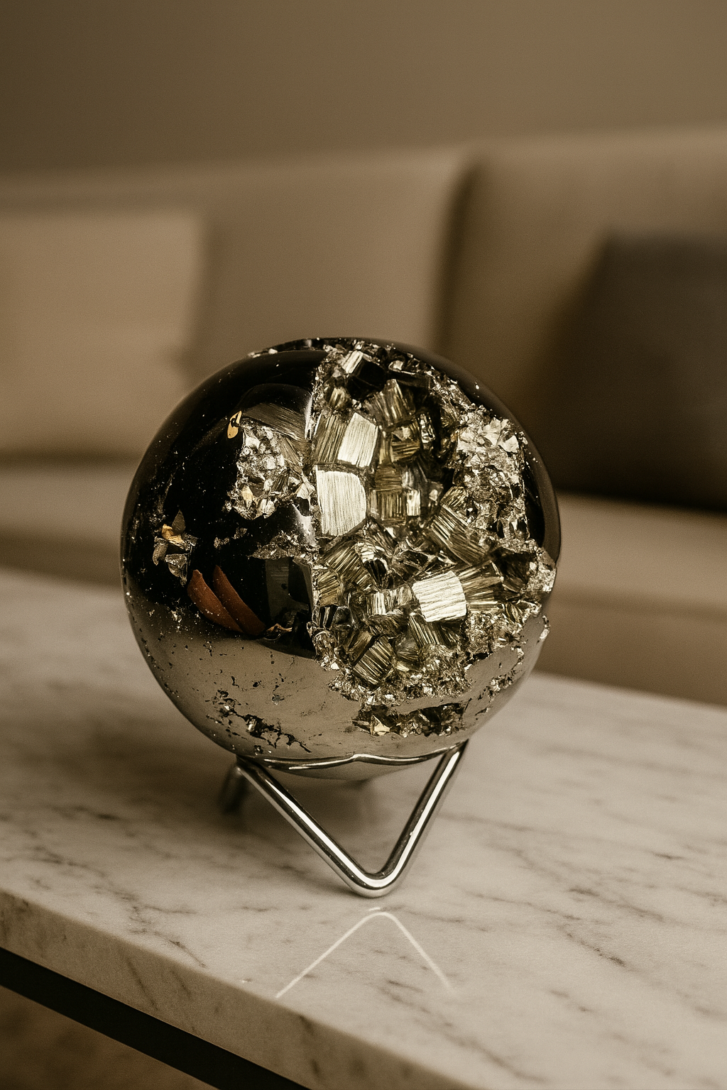 Diese Pyrit-Kugel ist nicht nur ein Schmuckstück, sondern auch ein kraftvoller Begleiter für Klarheit, Stärke und Wohlstand.