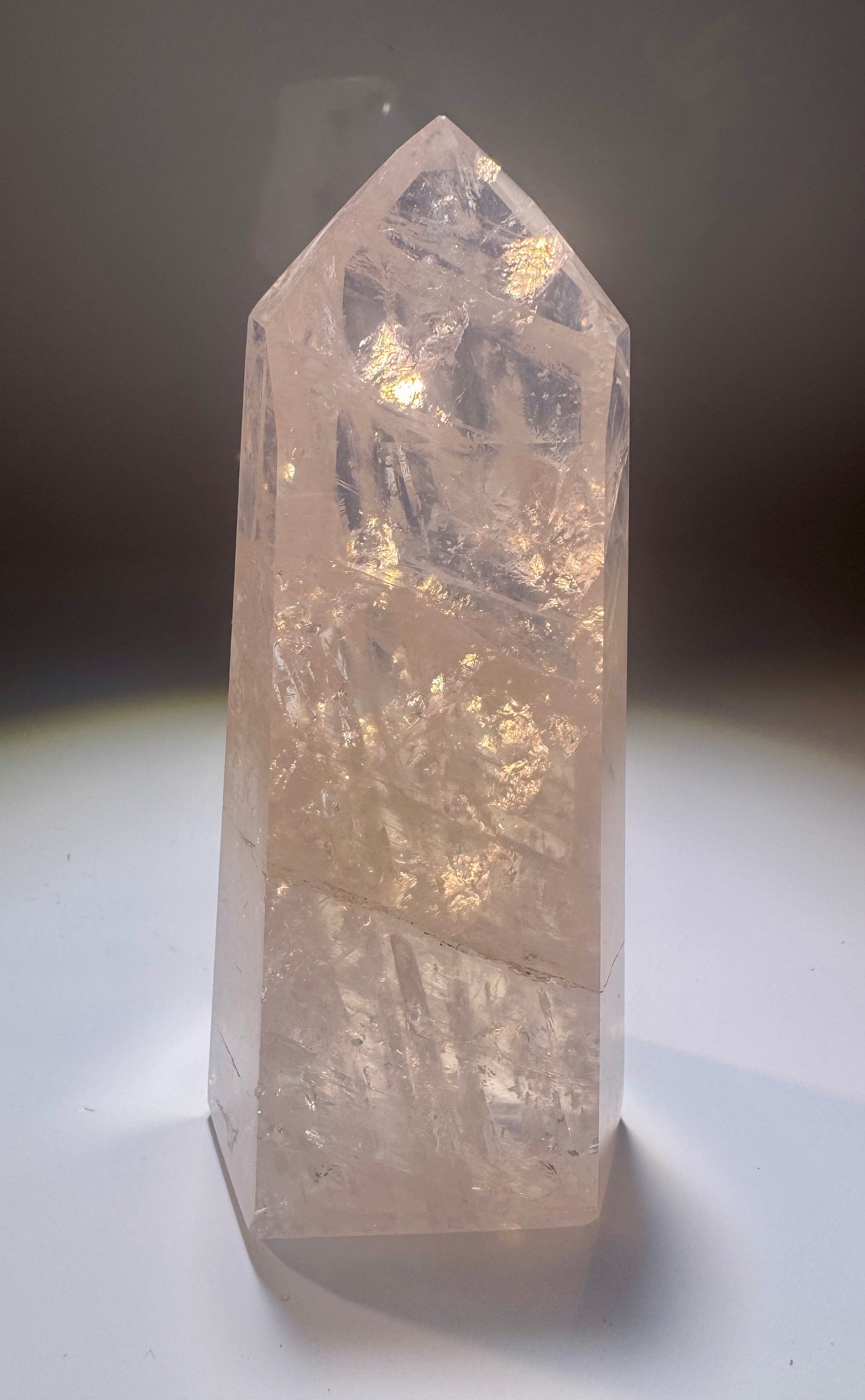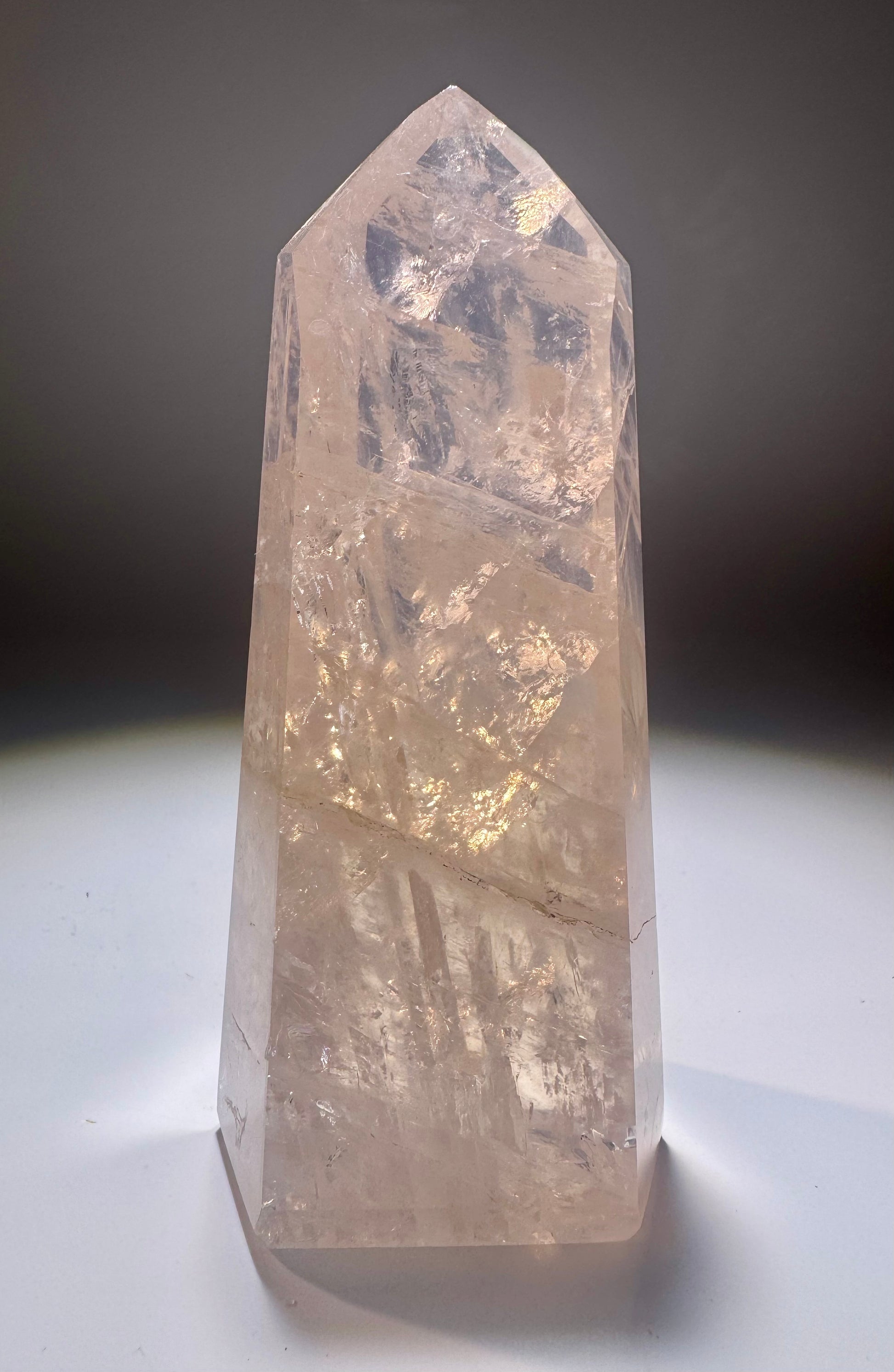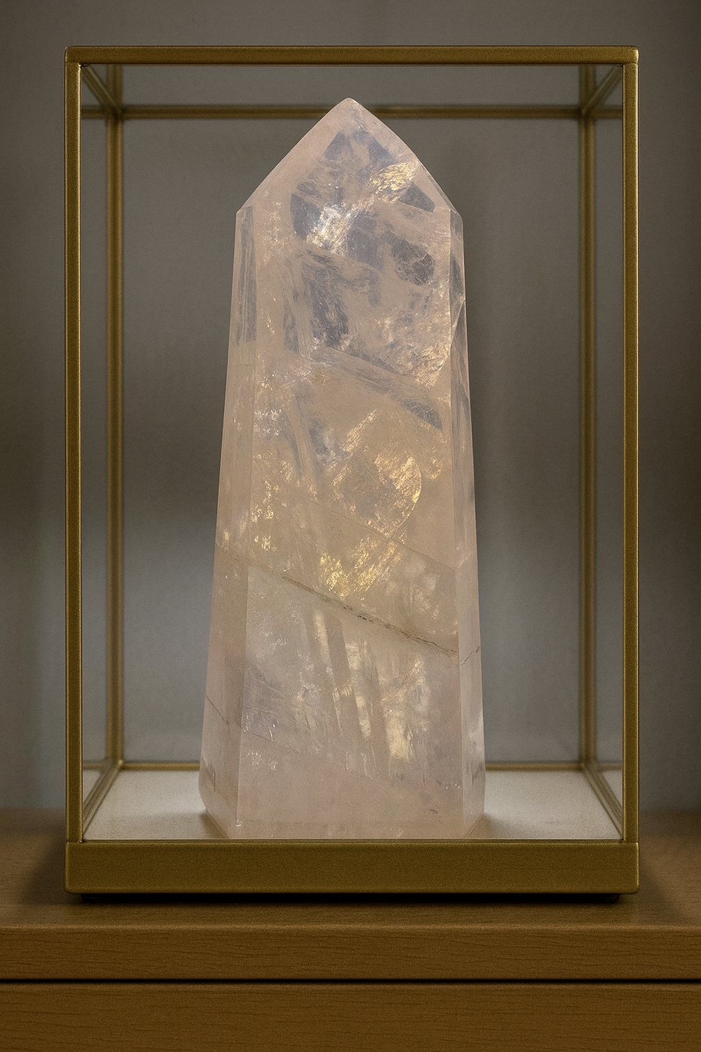 Rosenquarz steht für Liebe, Herzenswärme und eine tiefe, sanfte Energie – diese Spitze ist nicht nur ein ästhetisches Kunstwerk, sondern auch ein bedeutungsvoller Begleiter für dein Zuhause oder deine Meditation. 🌸