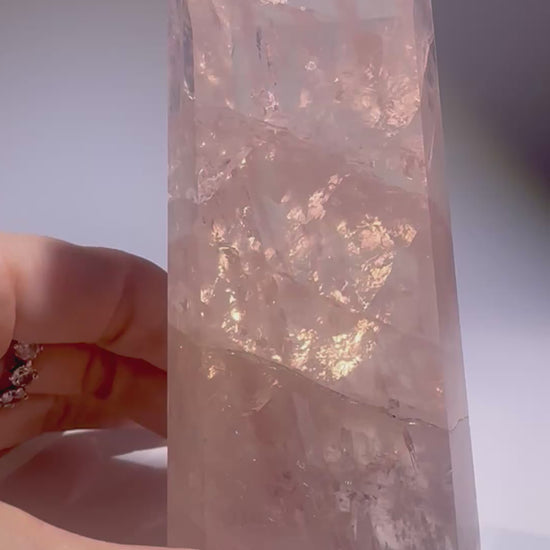 Ob zur Dekoration, für Rituale oder einfach als wertvolles Unikat – dieser rosa Quarz wurde sorgfältig geschliffen und mit Liebe ausgewählt. Ein Edelstein, der in seiner Farbe, Klarheit und Form besonders selten ist.