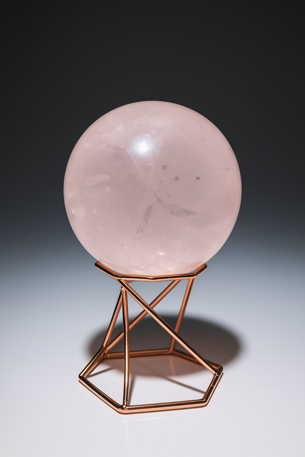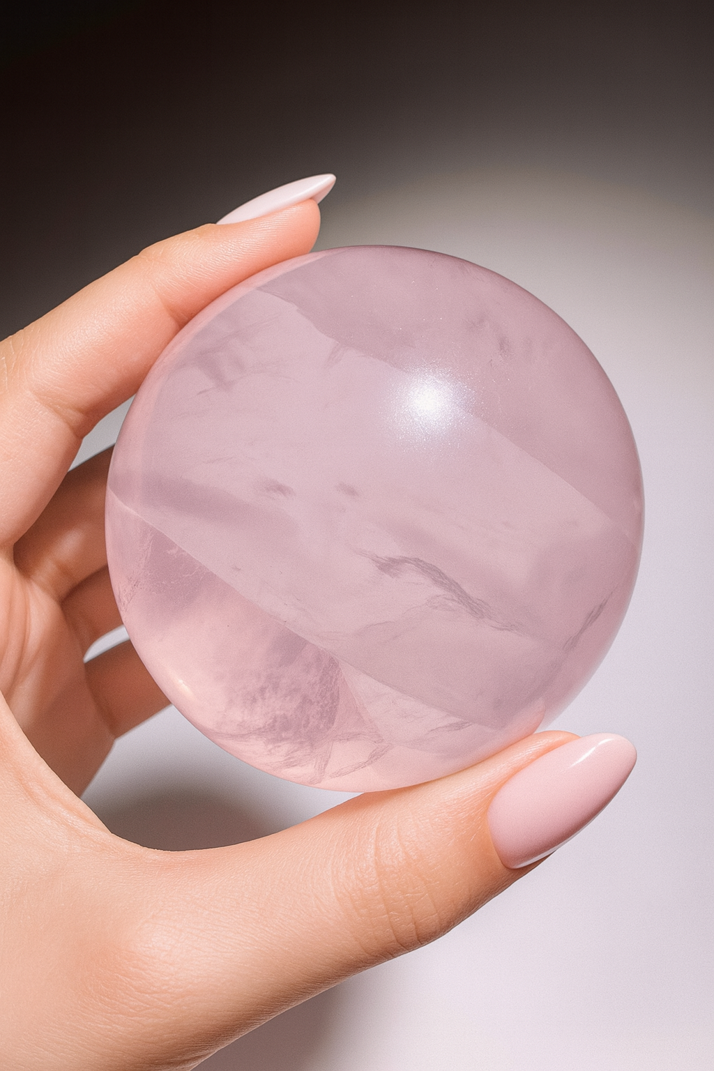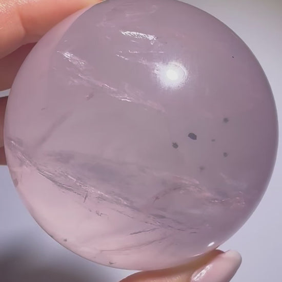Rosenquarz gehört zur Familie der Quarze und entsteht über Millionen von Jahren tief im Erdinneren, meist in magmatischen Gesteinsformationen. Seine zarte Farbe verdankt er winzigen Mengen von Titan, Eisen oder Mangan, die sich während der Kristallbildung im Quarz einlagern. Diese fein verteilten Mineralien sorgen für die charakteristische, milchige bis transparente Rosa-Färbung. In seiner Kugelform wirkt er besonders harmonisierend und kraftvoll.