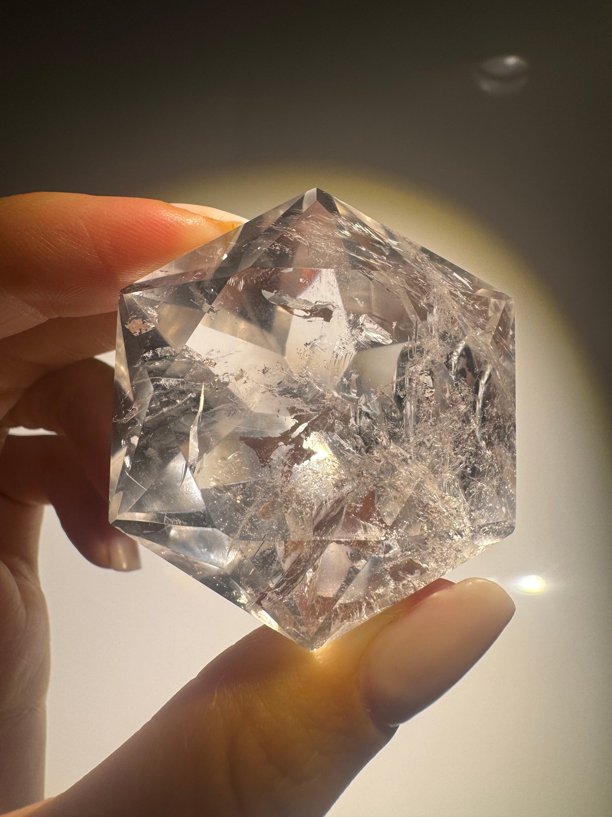 Dieser facettierte Bergkristall mit einer Höhe von 4.7 cm und einem Gewicht von 77g wurde mit grösster Präzision wie ein Diamant geschliffen – ein echtes Meisterwerk aus Brasilien 🇧🇷. In liebevoller Handarbeit entstand ein hochreines, lebendiges Einzelstück – geheimnisvoll, magisch und voller Licht.